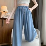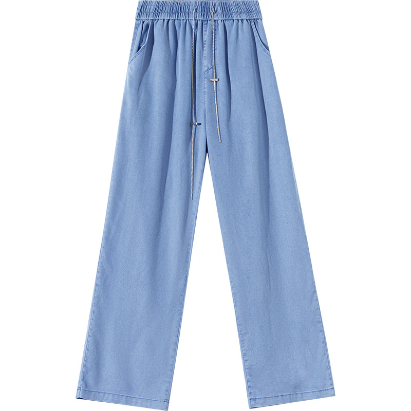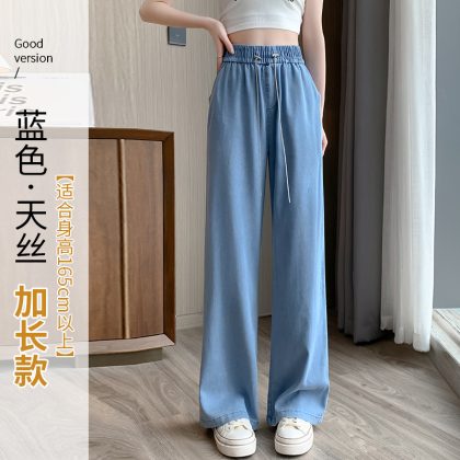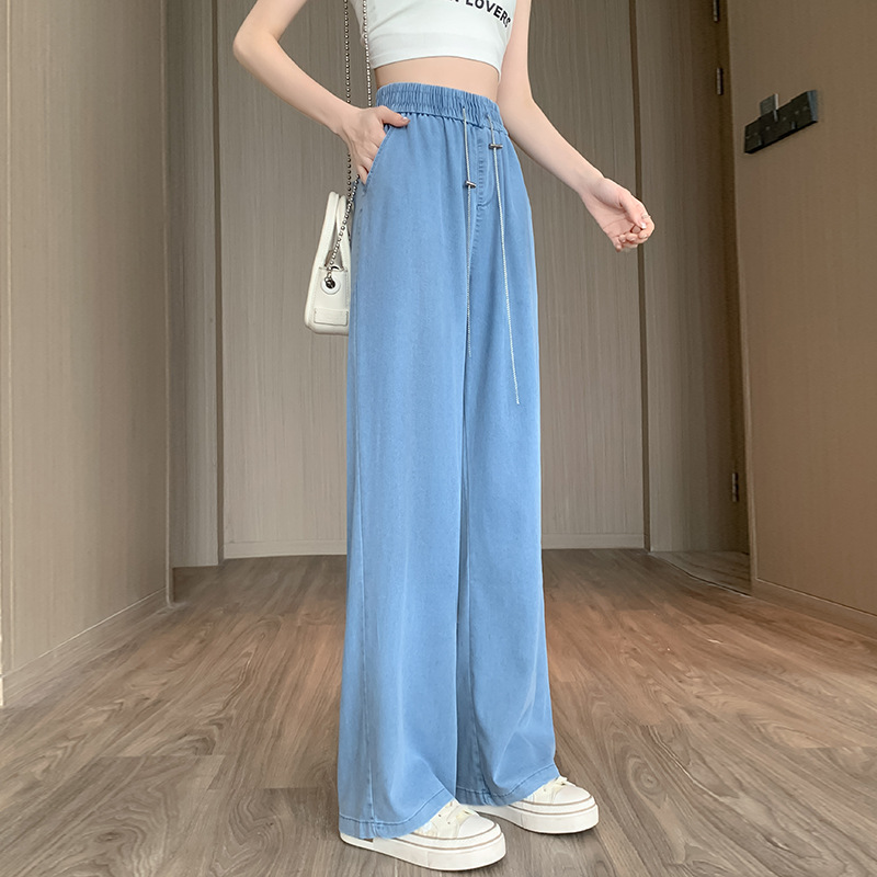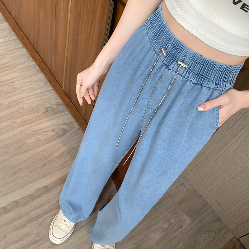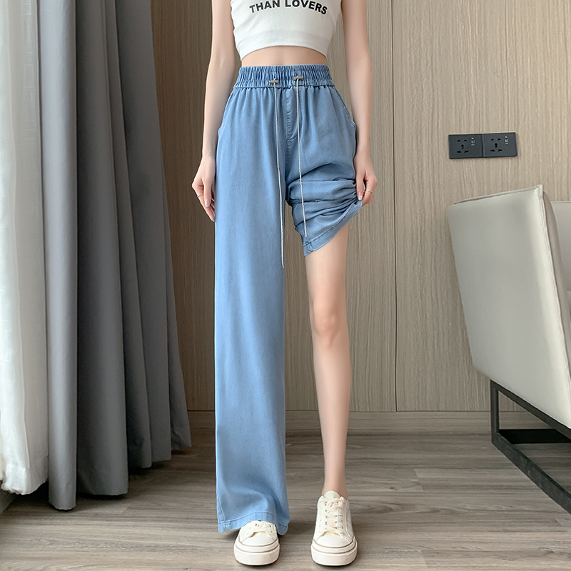 Real-shot Tencel Narrow Wide-leg Jeans Women’s Summer Thin Tight Waist Dagging Slimming Small Straight Floor Pants