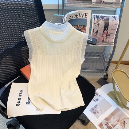 Real Shot Vest Women's New Summer Camisole Base Shirt Top Wearing Mesh Knitted Sleeveless T-shirt
