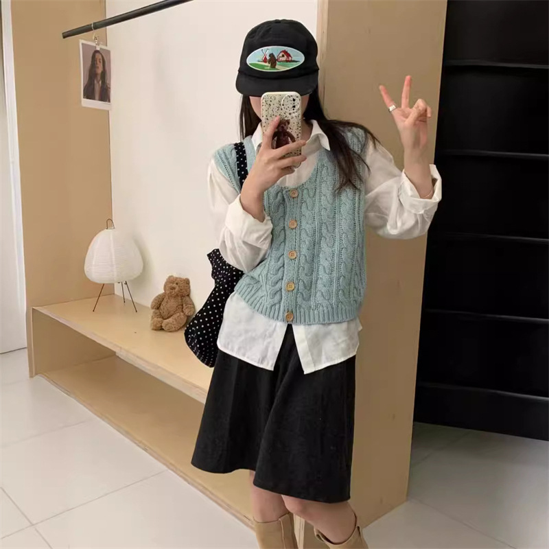 | nameOriginal | Real Shot Vintage Twist Low Neck Thick Knitted Vest Women's Spring and Autumn New Stacked Single-breasted Casual Slim Top |