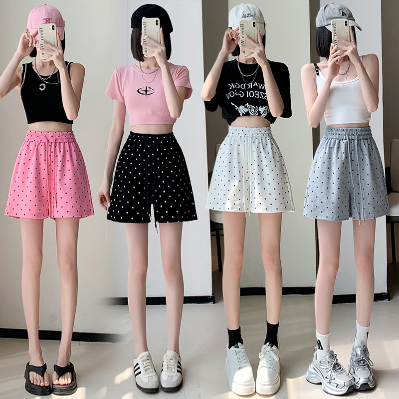 | nameOriginal | Real shot wave point sports shorts women's 2024 summer new high waist slimming all-match drawstring wide leg casual hot pants |