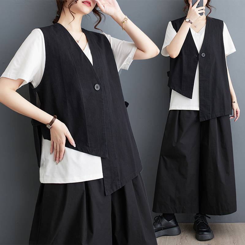 Real Shot Yaoji Yamamoto Style Distinctive Irregular Suit Vest Women’s New Vest Niche Design Vest Top