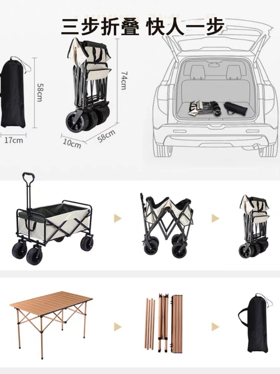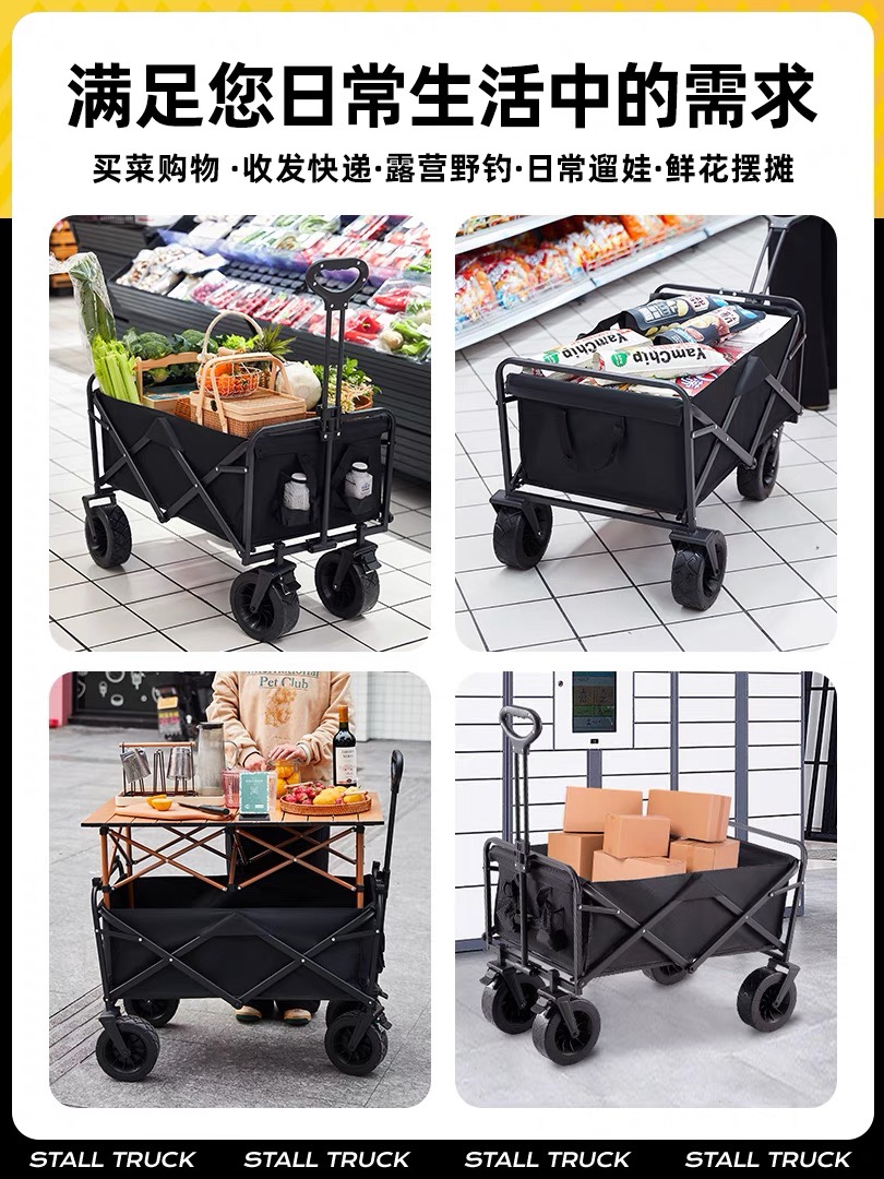 | nameOriginal | Rear-opening tow bucket stall foldable cart mobile cart outdoor camp portable shopping cart camping cart |