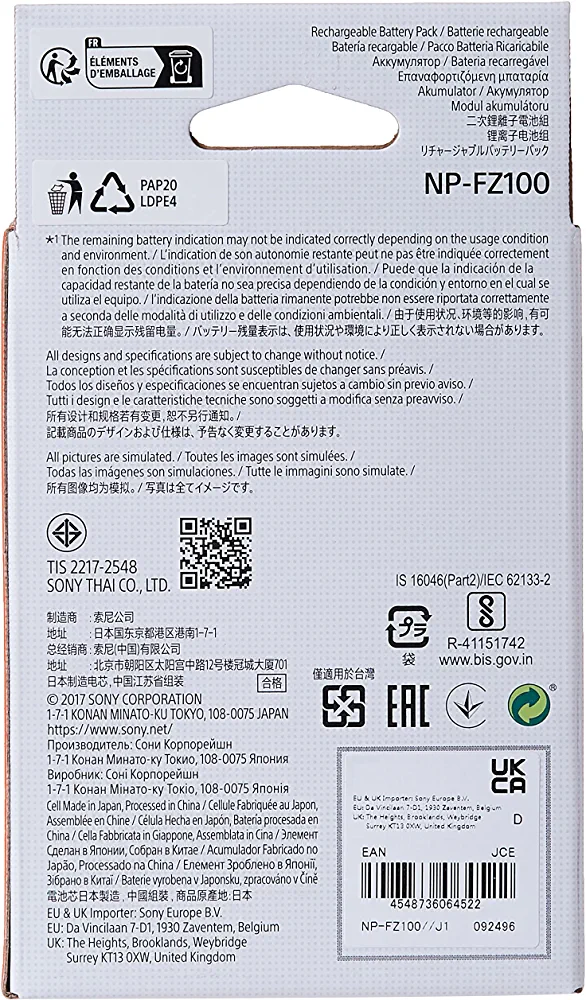 | nameOriginal | Sony Np-Fz100 Z-Series Rechargeable Battery Pack, Npfz100.Ce |