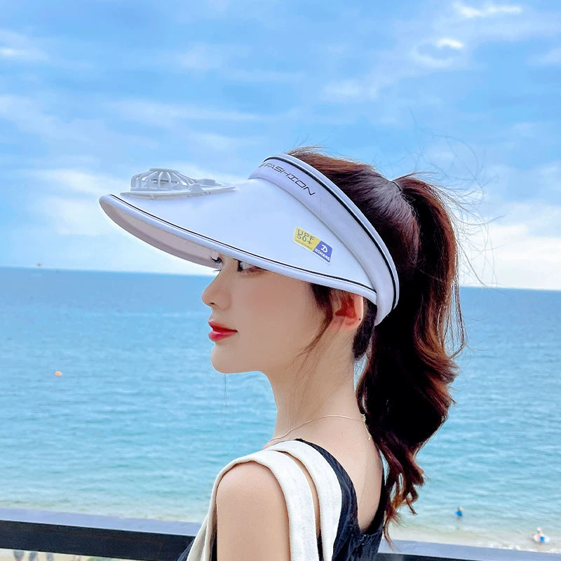 | nameOriginal | Rechargeable fan hat sun protection hat women's summer 2024 new empty top large brim sun hat revealing face small sun hat |