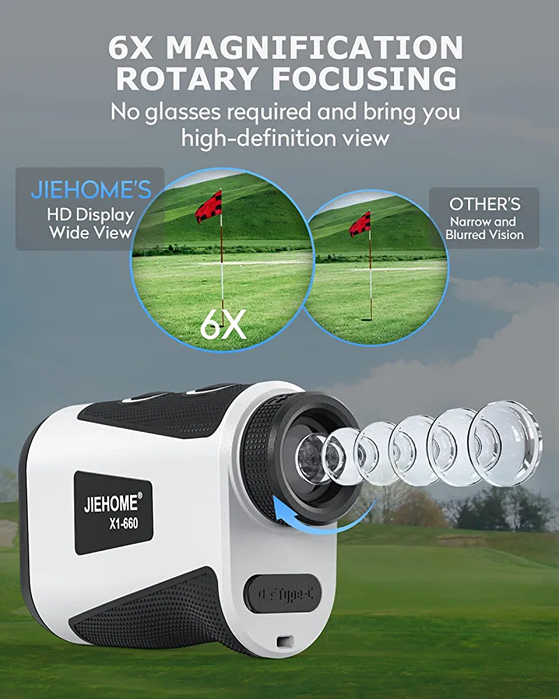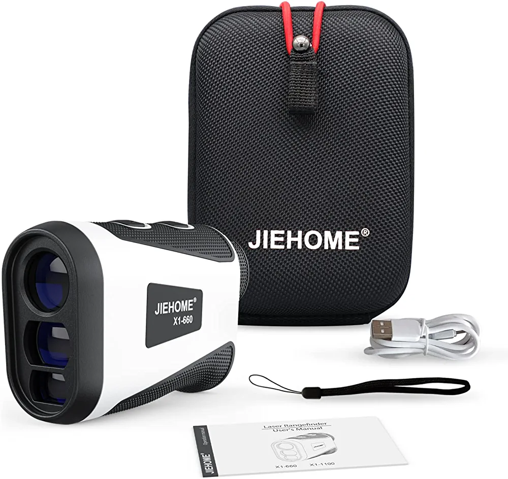 Rechargeable JIEHOME X1 Golf Rangefinder with Slope, Flagpole Lock and Vibration for Golfing & Hunting. High-Precision Laser Range Finder with 660/1100YDS Distance Measuring.