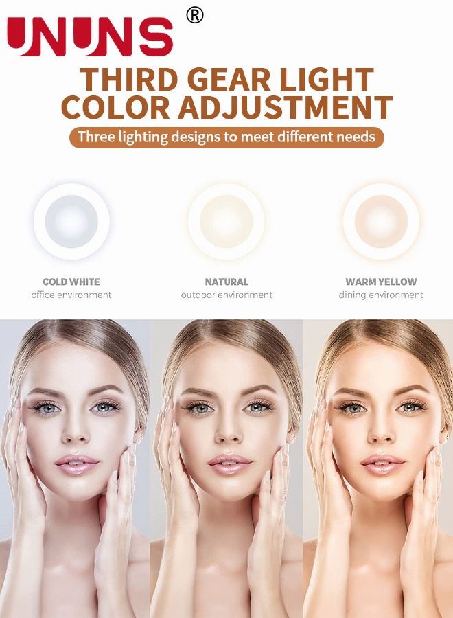 Introducing our Makeup Mirror with Lights, the perfect addition to your vanity table or bathroom counter. This rechargeable mirror features a 5X magnifying lens, allowing you to get up close and personal with your makeup application. With 3 color modes to choose from, you can adjust the lighting to suit your needs and ensure that your makeup looks flawless in any setting. The 90° free rotation feature allows you to adjust the angle of the mirror to your liking, making it easy to find the perfect position for your makeup application. The LED lighting provides bright, natural light that mimics daylight, ensuring that your makeup looks great in any lighting situation. This desktop mirror is also portable, making it easy to take with you on the go. Whether you’re getting ready for a night out or just need to touch up your makeup on the go, our Makeup Mirror with Lights is the perfect tool for the job.
