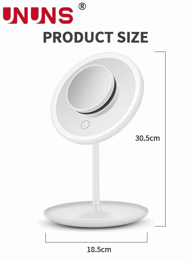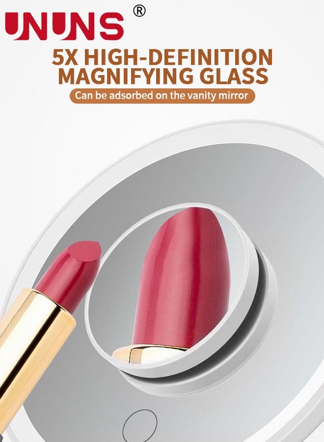 Rechargeable LED Makeup Mirror with 5X Magnification and 3 Color Modes. Portable and Rotatable Vanity Mirror.