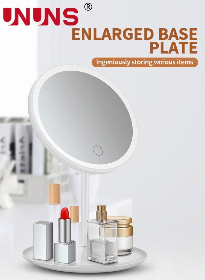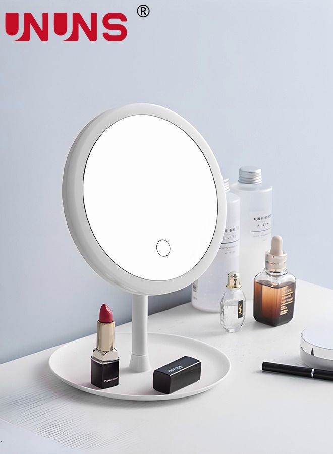 Makeup Mirror with Lights, Rechargeable 5X Magnifying Vanity Mirror, 3 Color Modes, 90°Free Rotation, LED Lighting Desktop Mirror, Portable Cosmetic Mirror