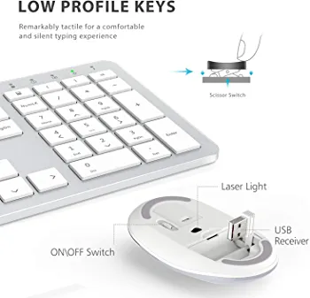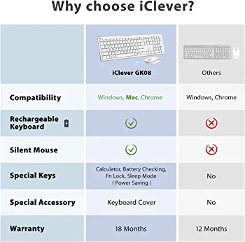 | nameOriginal | iClever GK08 Wireless Keyboard and Mouse – Rechargeable Wireless Keyboard Ergonomic Full Size Design with Number Pad, 2.4G Stable Connection Slim White Keyboard and Mouse for Windows, Mac OS Computer |