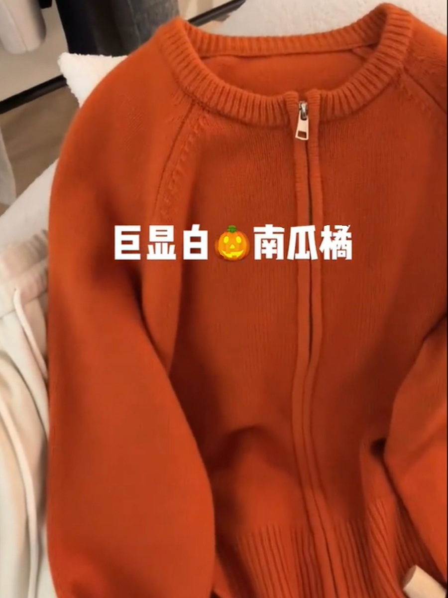 | nameOriginal | Recommend! This year's super popular pumpkin orange zipper sweater coat women's round neck double pull long sleeve knitted cardigan |