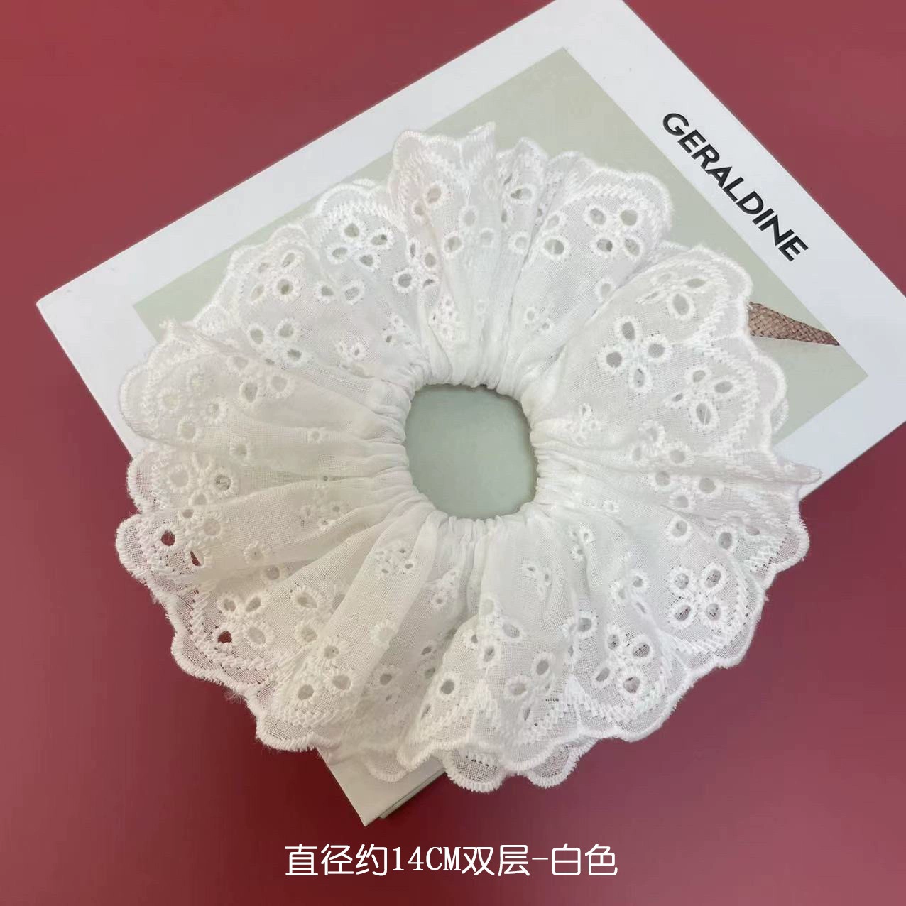 | nameOriginal | Recommended by blogger ~ Zhao Lusi's same style double-layered white lace hair band, French niche hollow hand-made large hair band |