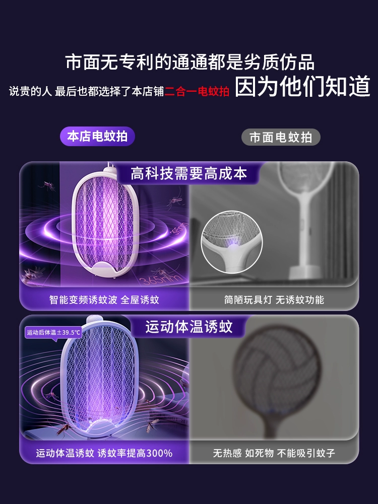 Recommended by Li Jiazui] Electric mosquito swatter, rechargeable household super powerful mosquito killer lamp, two-in-one automatic mosquito repellent artifact
