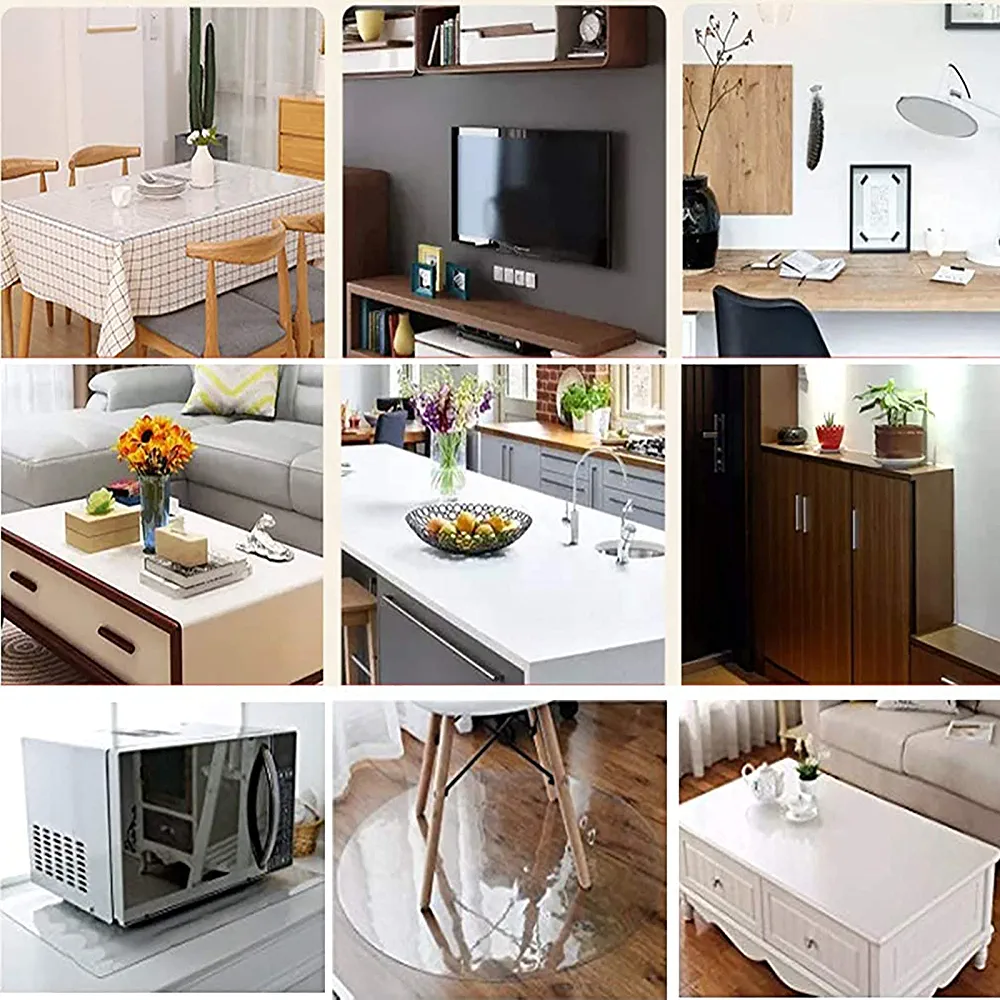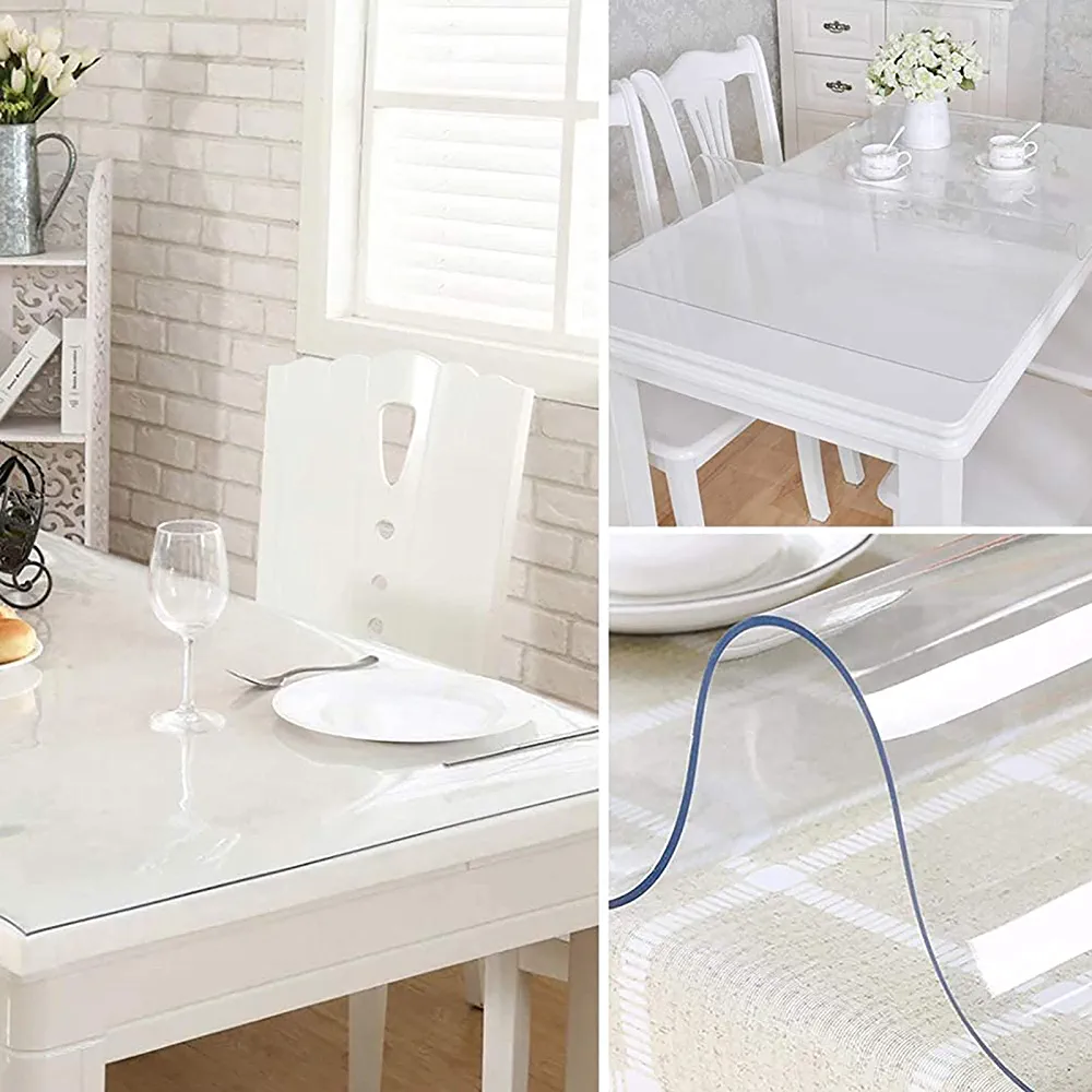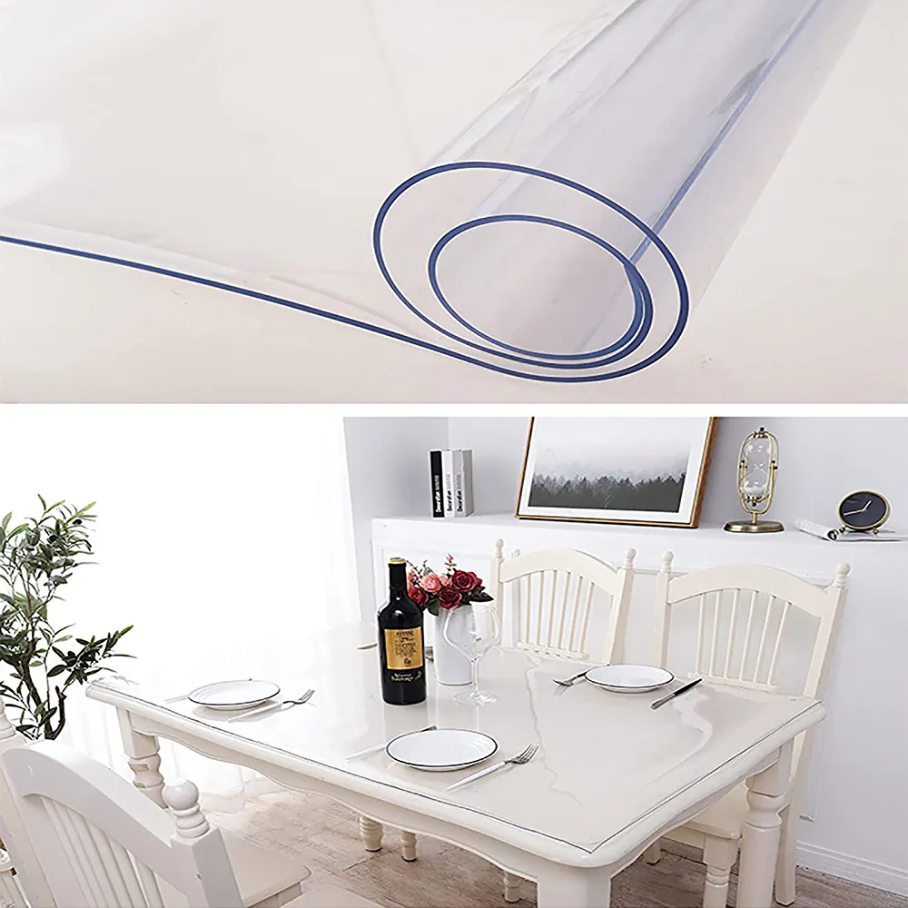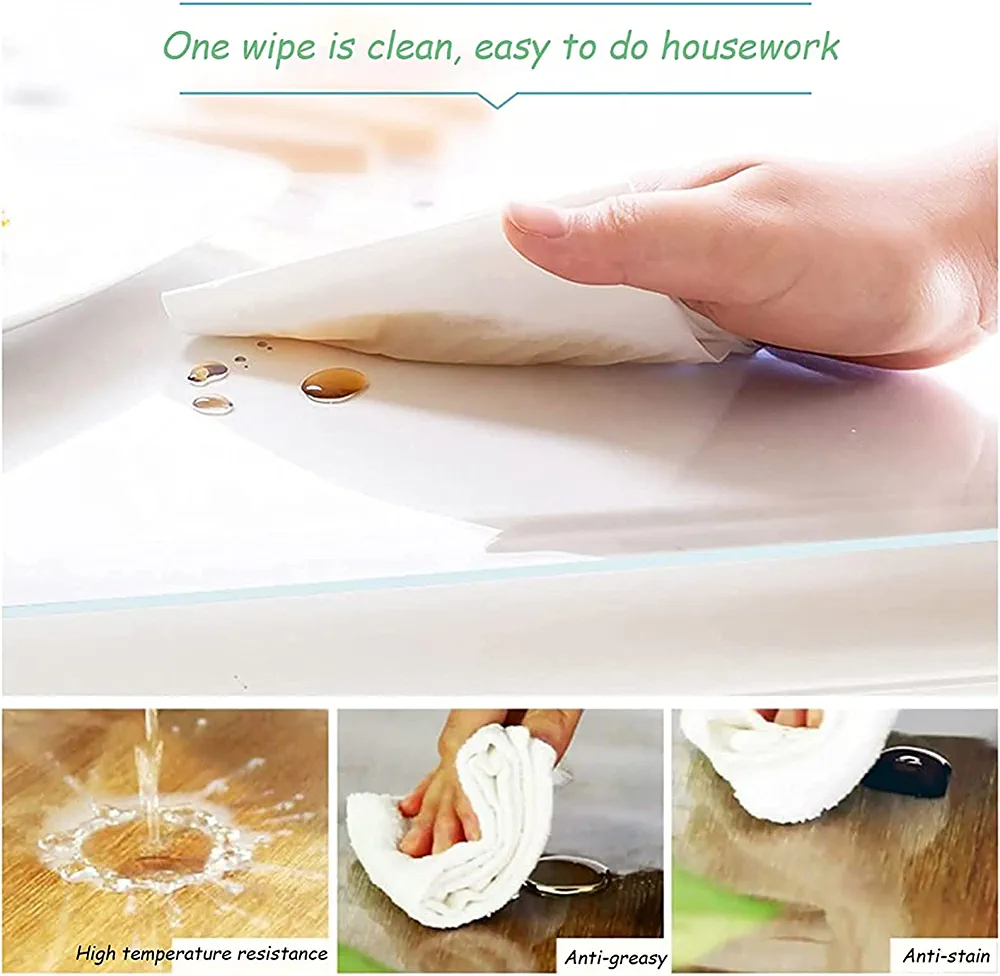 Introducing our Clear Table Cover Protector, the perfect solution to protect your dining room table or kitchen wood grain from scratches, spills, and stains. Made from high-quality PVC plastic, this desk mat is durable and long-lasting, ensuring your table stays in pristine condition for years to come.