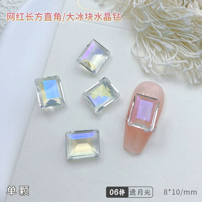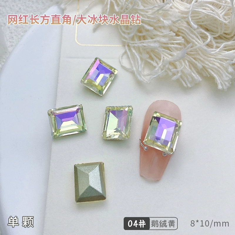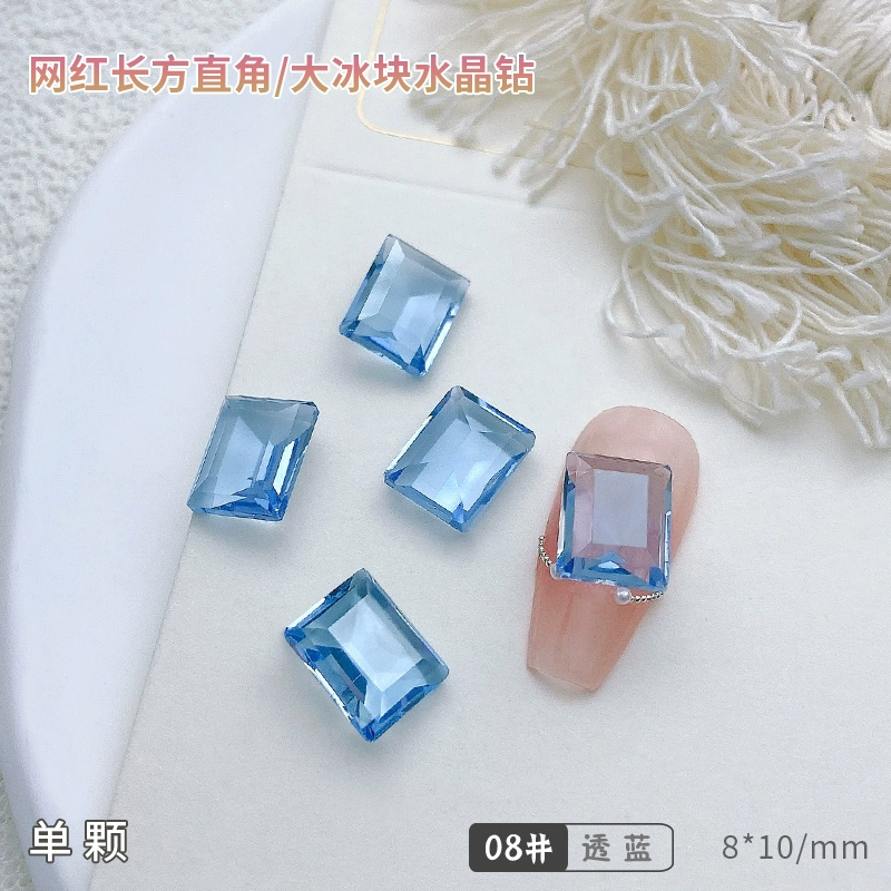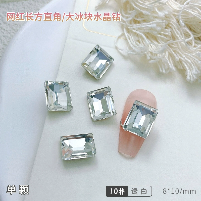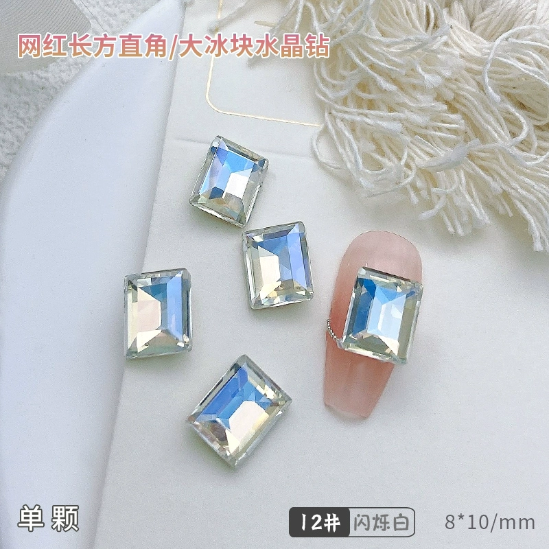 | nameOriginal | Rectangular right-angle manicure diamond color super flash diamond rectangular pointed base special-shaped nail decoration 8*10 transparent color diamond |