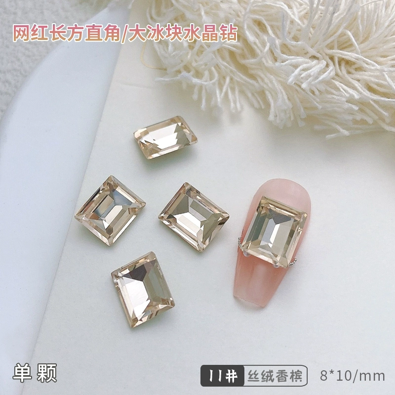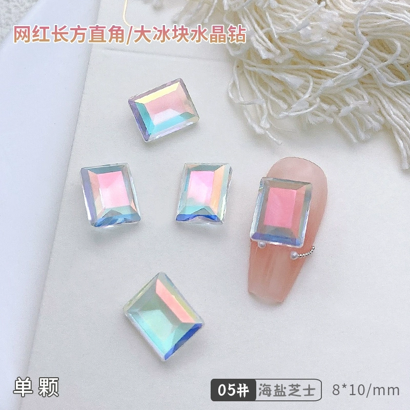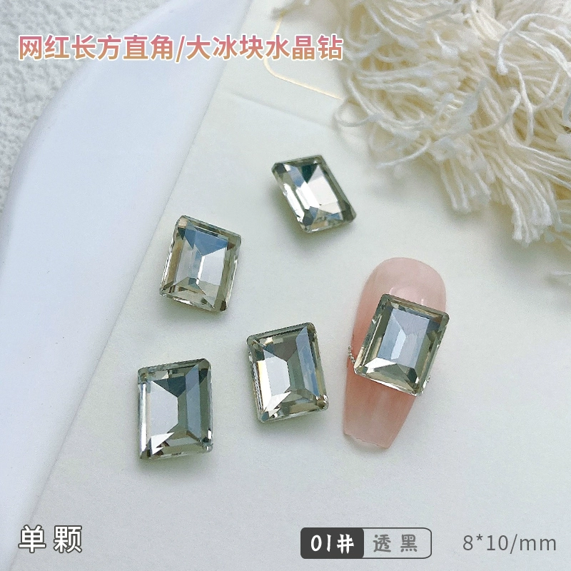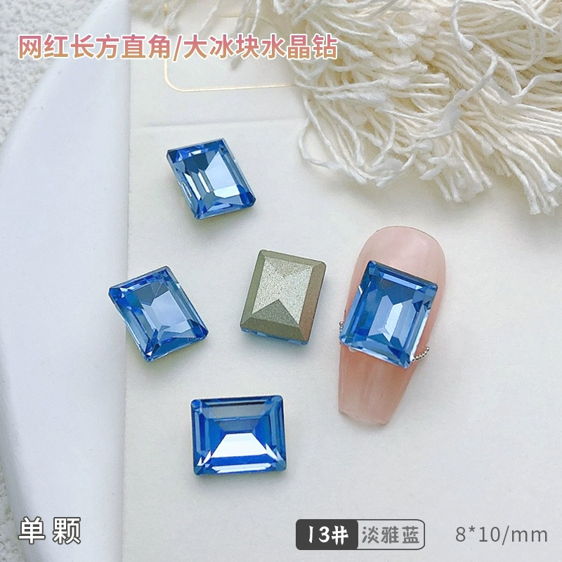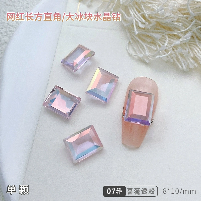 | nameOriginal | Rectangular right-angle manicure diamond color super flash diamond rectangular pointed base special-shaped nail decoration 8*10 transparent color diamond |