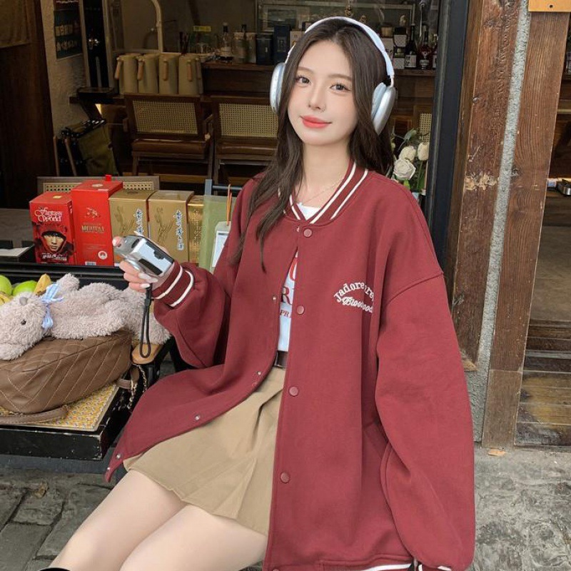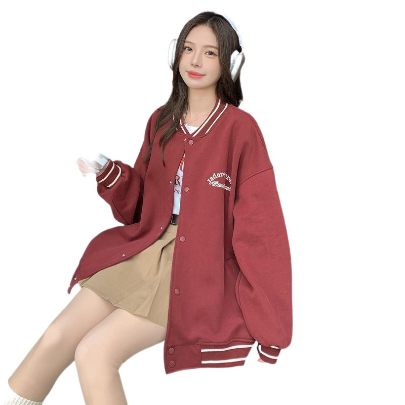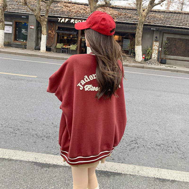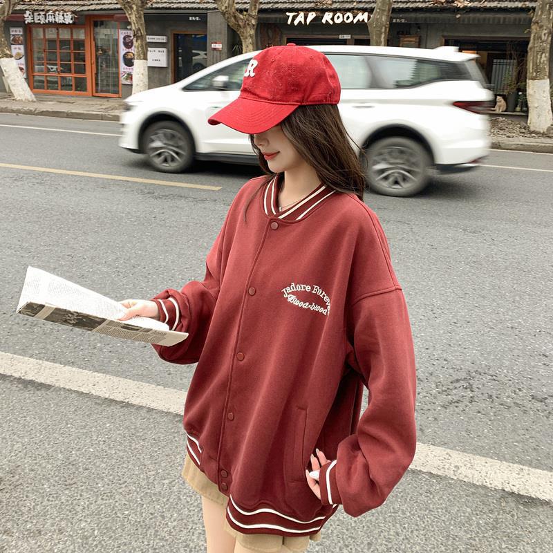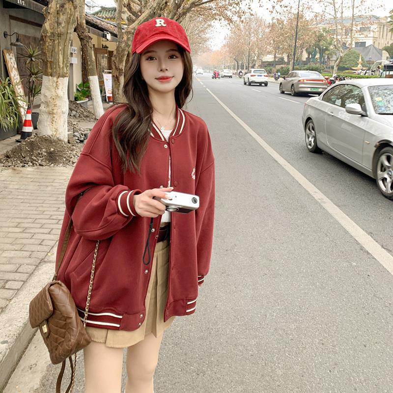 Red Academy Style Loose Baseball Suit Spring and Autumn New Casual Slim Look Small Super Good-looking American Short Coat for Women