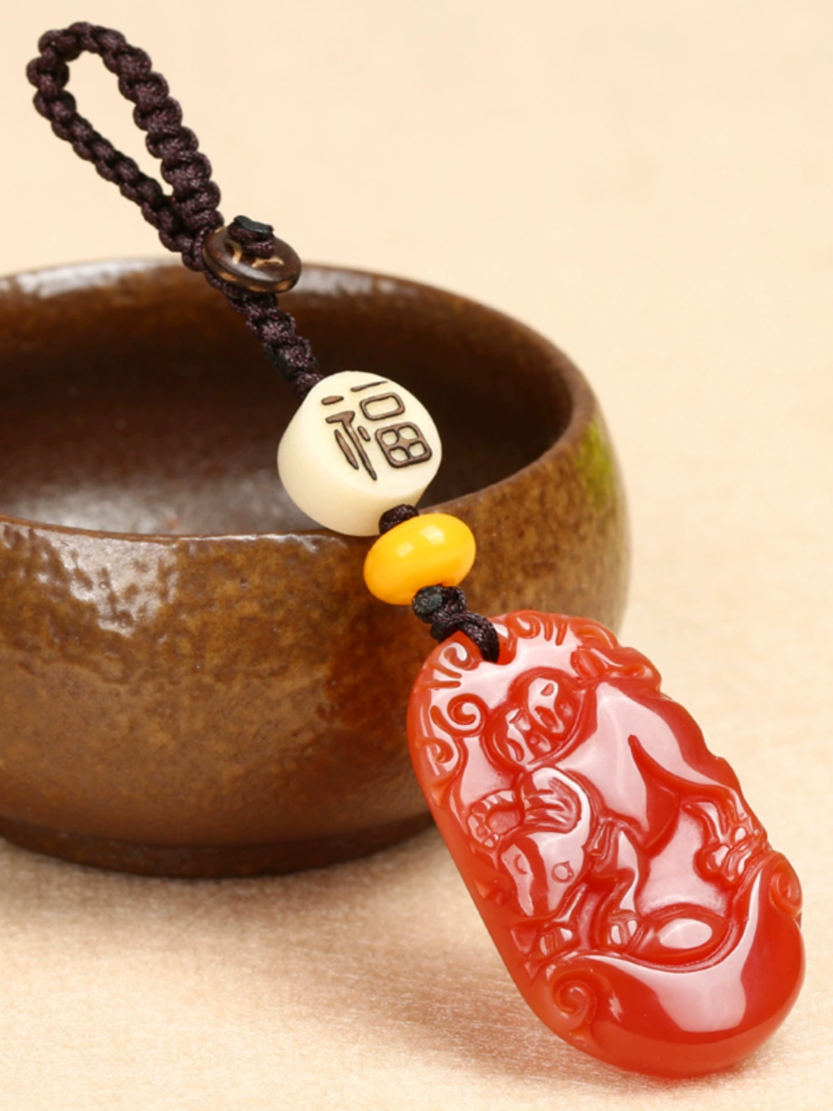 | nameOriginal | Red agate 12 zodiac pendant rat, ox, tiger, rabbit, dragon, snake, horse, sheep, monkey, rooster, dog, pig, bodhi keychain, birth year pendant |