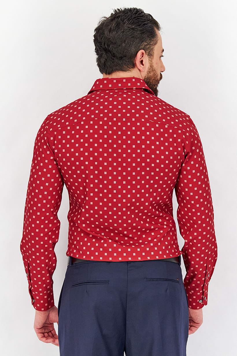 | sub_Categories | Men Clothing, Dress Shirts, men slim fit solid all over print long sleeves dress shirt red |