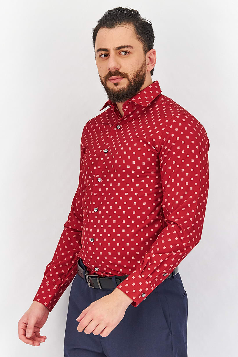 | nameOriginal | Men Slim Fit Solid All Over Print Long Sleeves Dress Shirt, Red |