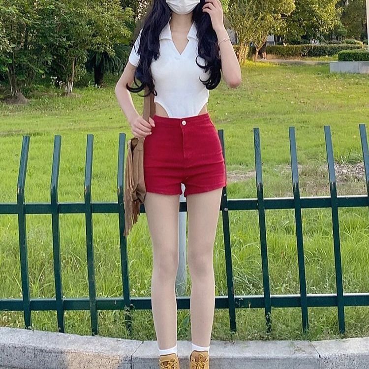 | nameOriginal | Red American Style Denim Shorts Women's 2024 Summer New Hot High Waist Hot Girl Thin Tight A- line Hot Pants |