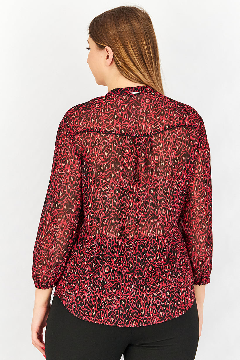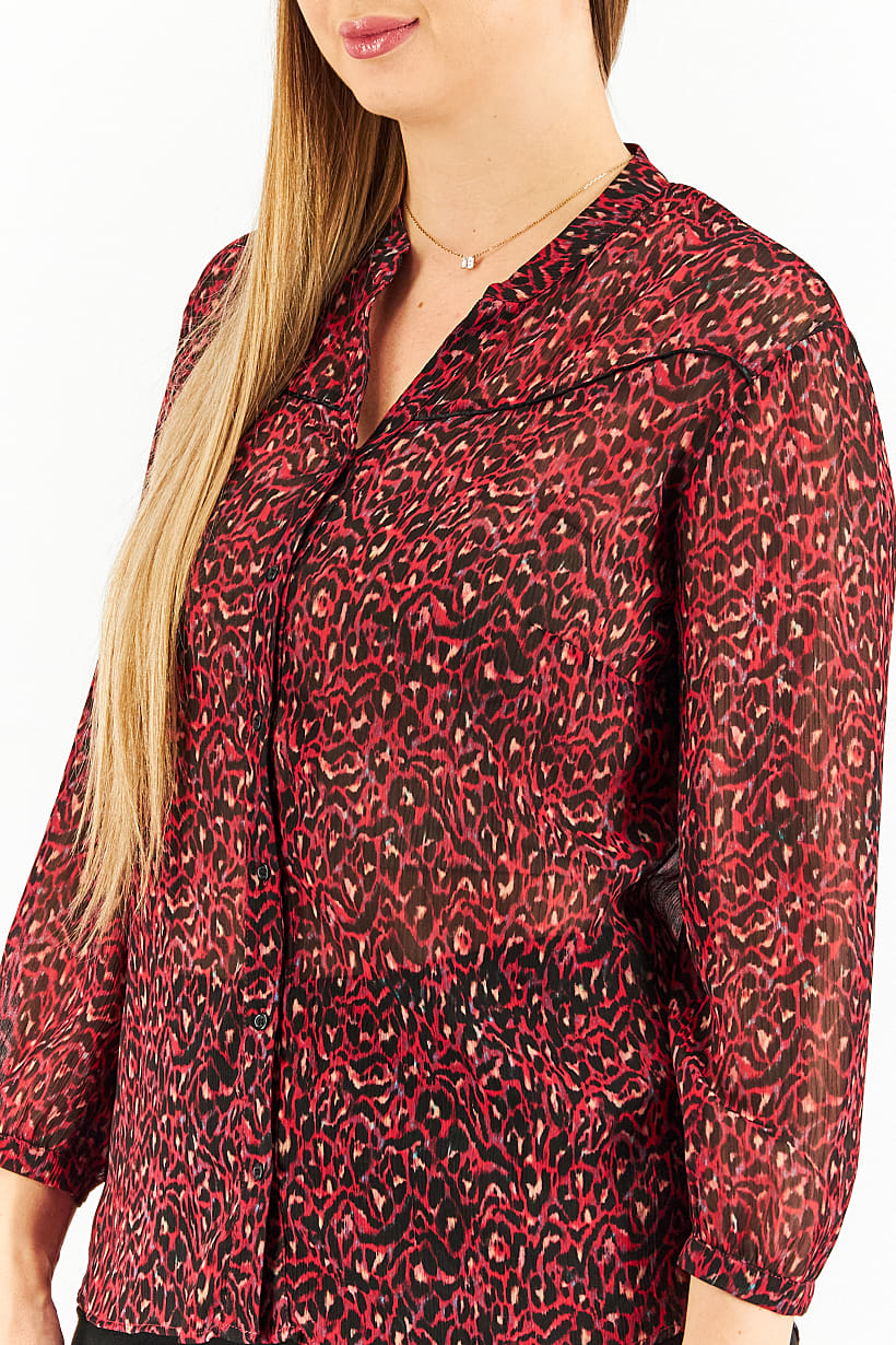 Care : Machine washable, Fit : Regular fit, Ideal For : Women, Size shown : FR, Types of Hem : Straight hem, Types of Neckline & Collar : Split neck, Types of Sleeve : Longsleeve, Disclaimer : Product color may slightly vary due to photographic lighting sources or your monitor settings., Fabrics : 100% Polyester, Occasion : Casual, Pattern & Print : Allover print, Types of Closures : Button, Color Family : Red,