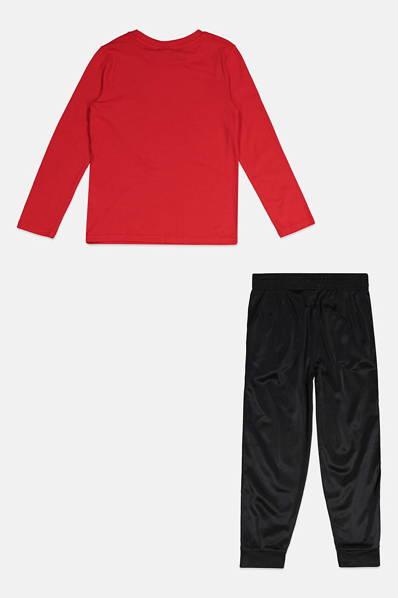 Red and black sports fit training set for boys with long sleeve t-shirt and pants.