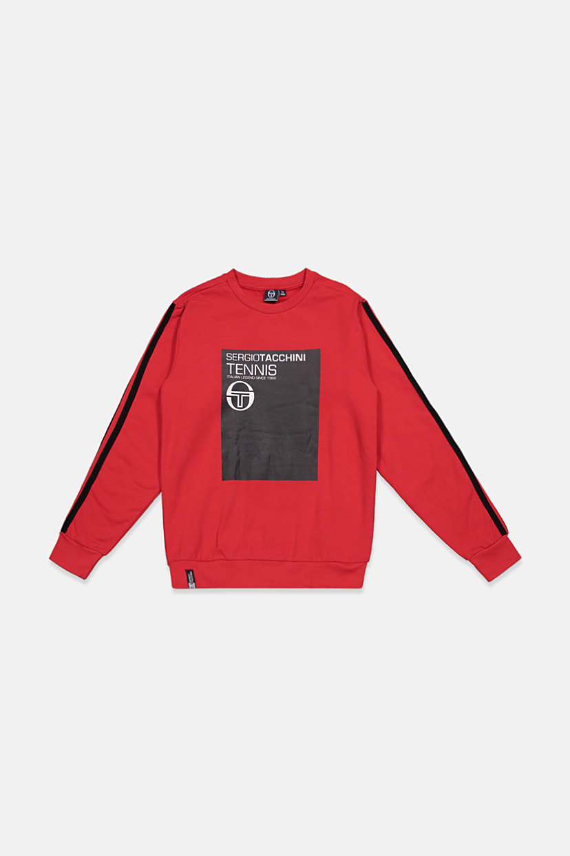 This product is perfect for boys and can be easily cared for by machine washing. It features a crew neckline and long sleeves with a straight hem and pullover closure. The sweatshirt style is ideal for casual occasions and the graphic print adds a touch of fun. Please note that the product color may vary slightly due to lighting or monitor settings. The fabric is made of 95% cotton and 5% elastane, ensuring comfort and durability. The color family is red.