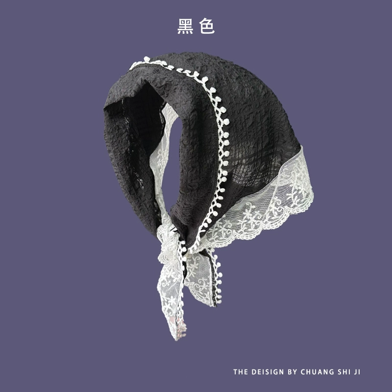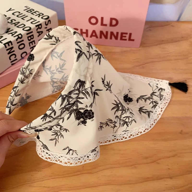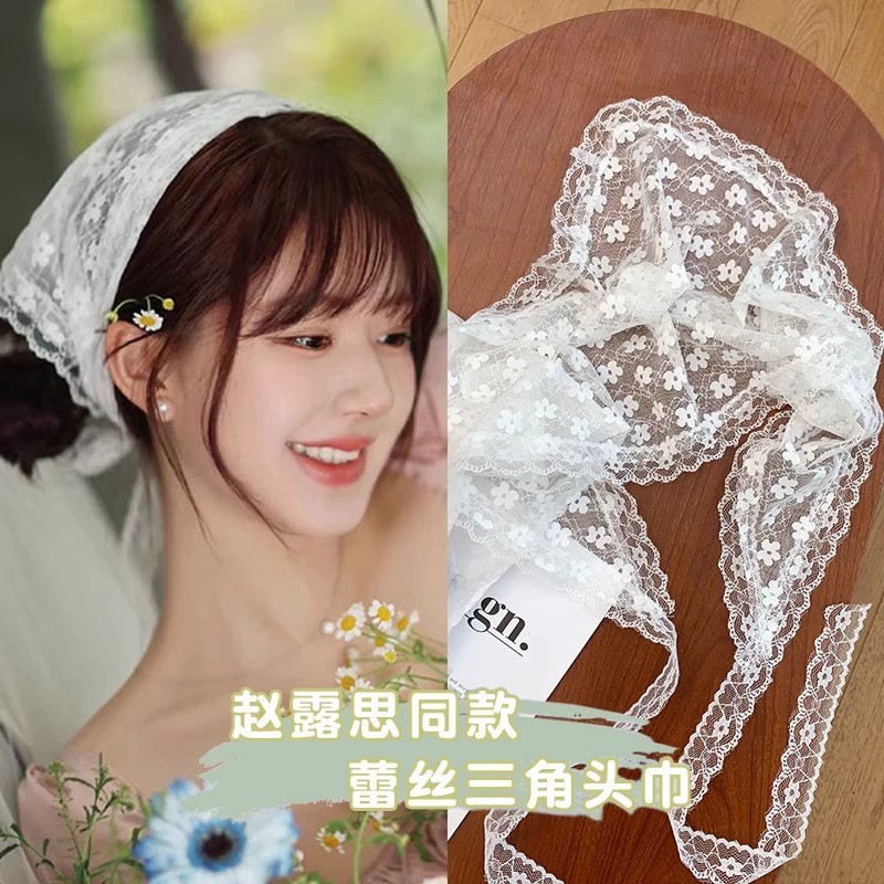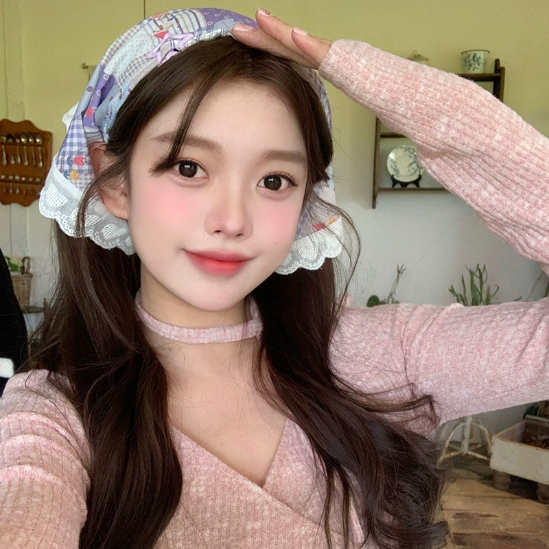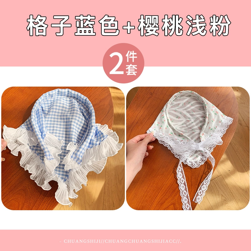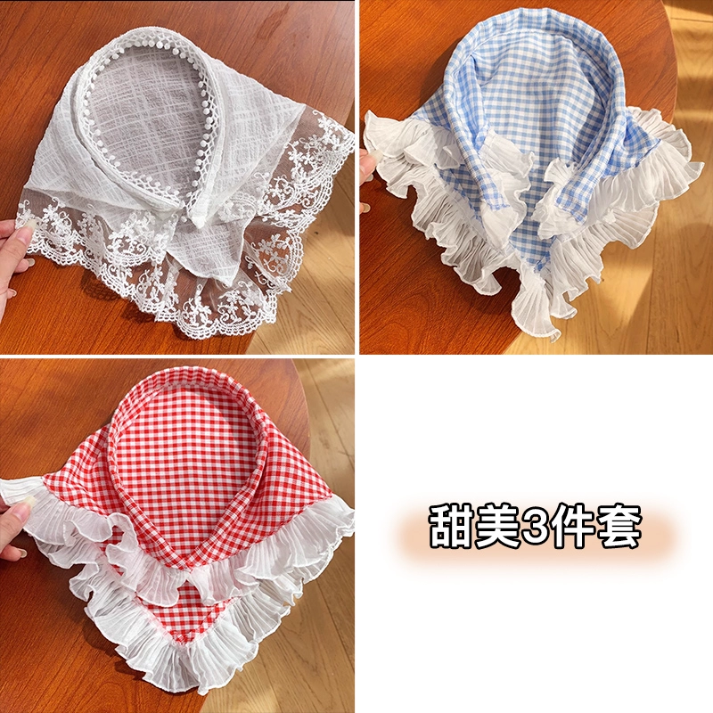 | nameOriginal | Red and blue plaid headscarf headband lace triangle scarf women's Baotou pastoral style headband high-end beach photo headband |