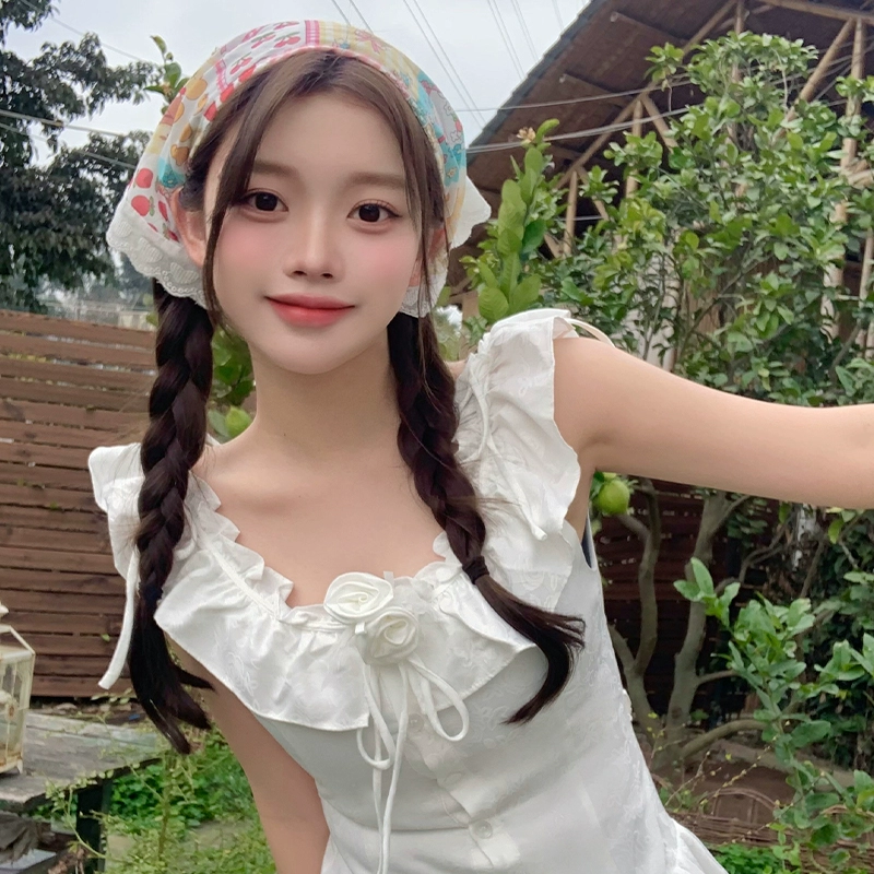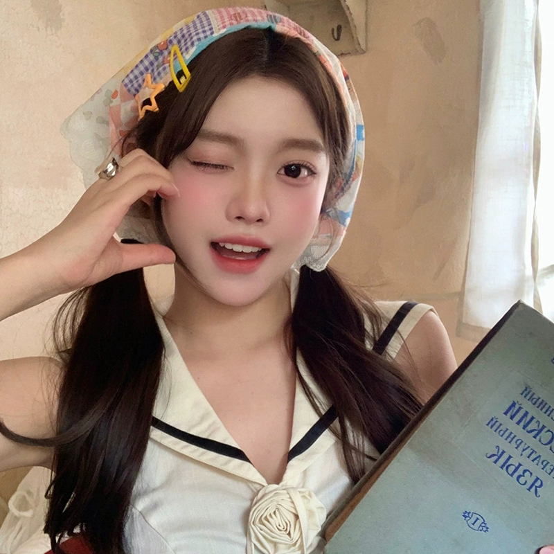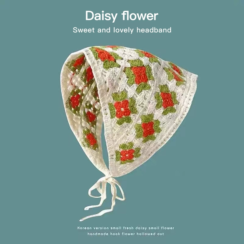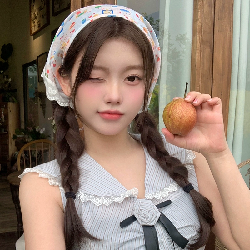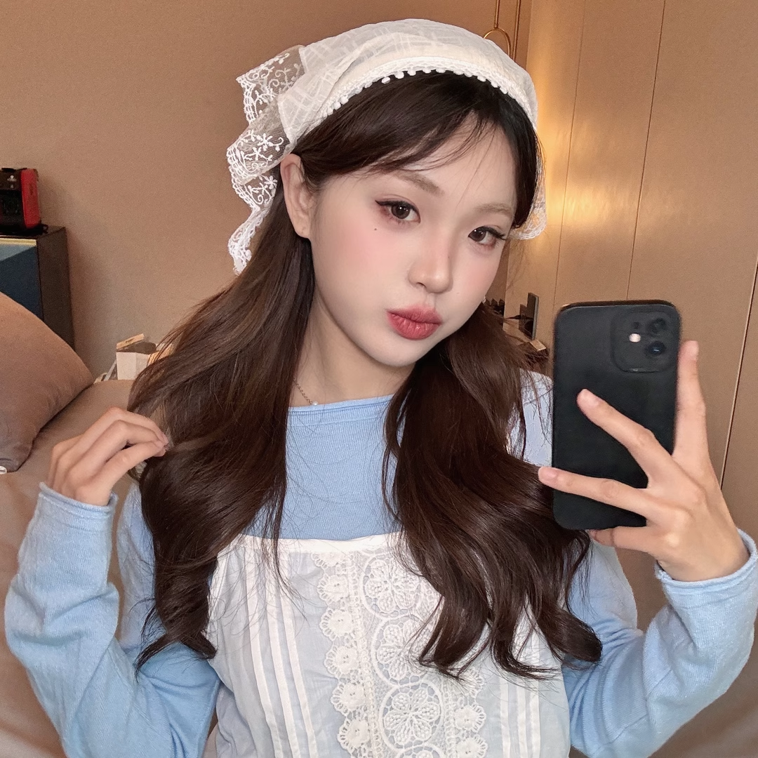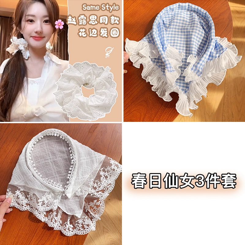 | nameOriginal | Red and blue plaid headscarf headband lace triangle scarf women's Baotou pastoral style headband high-end beach photo headband |