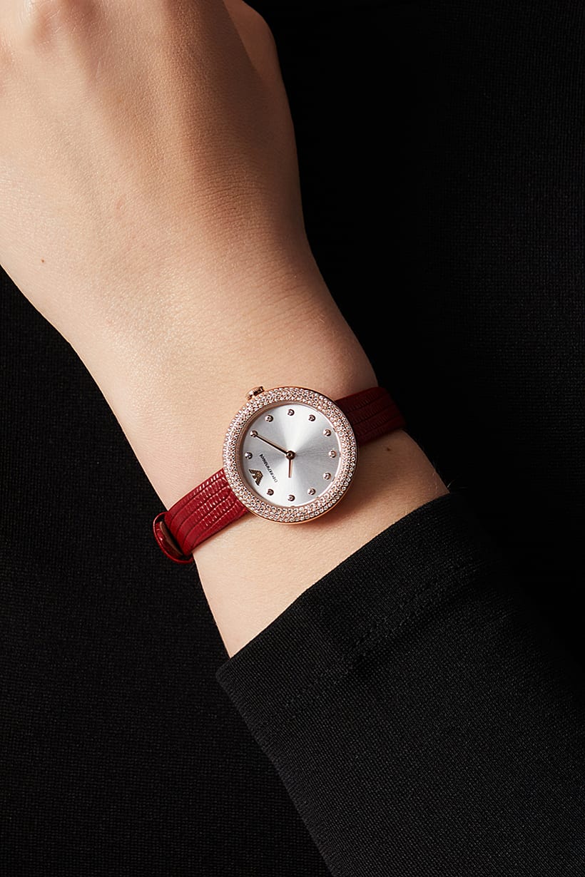 | nameOriginal | Women AR11438 Round Dial Leather Watch, Red and Gold |