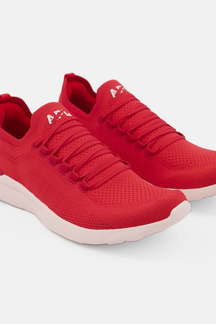 Women Techloom Breeze Lace Up Running Shoes, Red/Light Pink