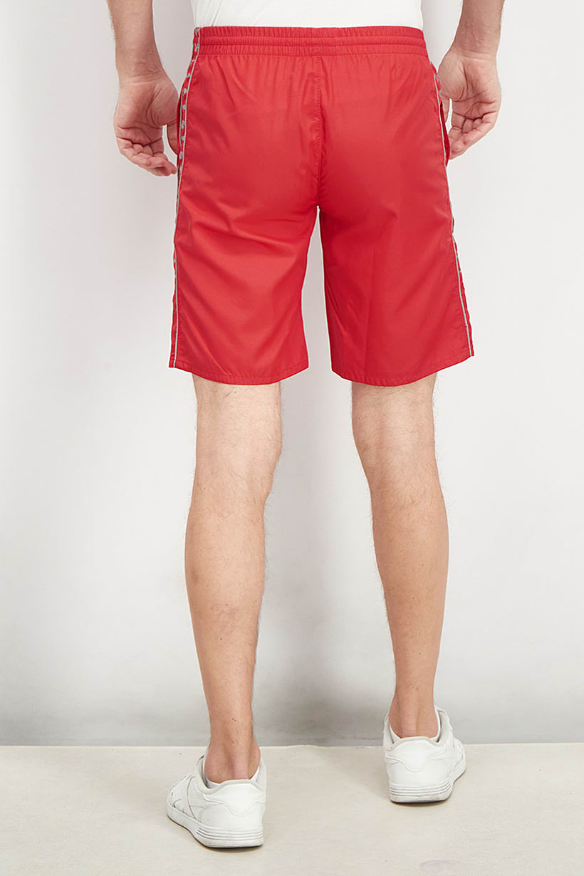 Men Printed Drawstring Sport Short, Red and Metallic Silver