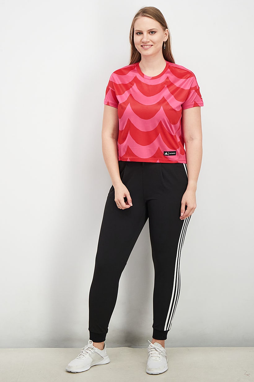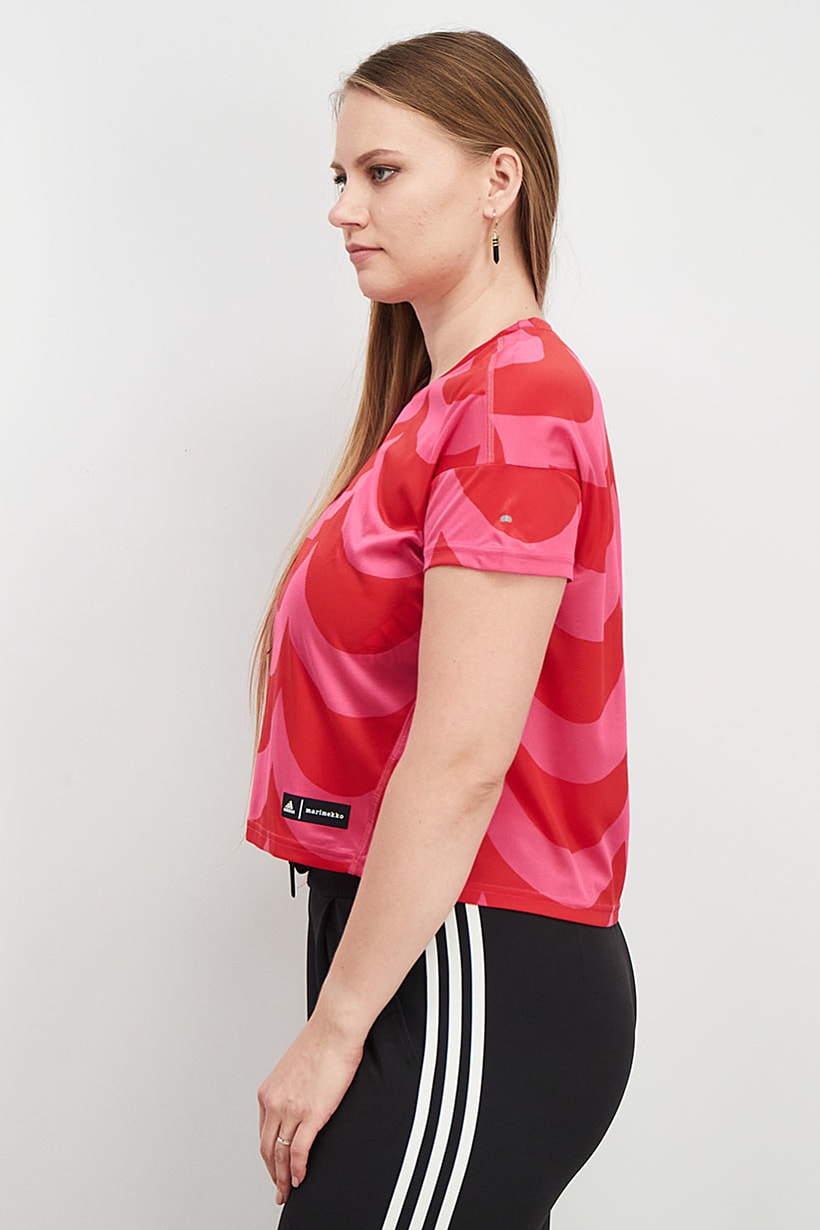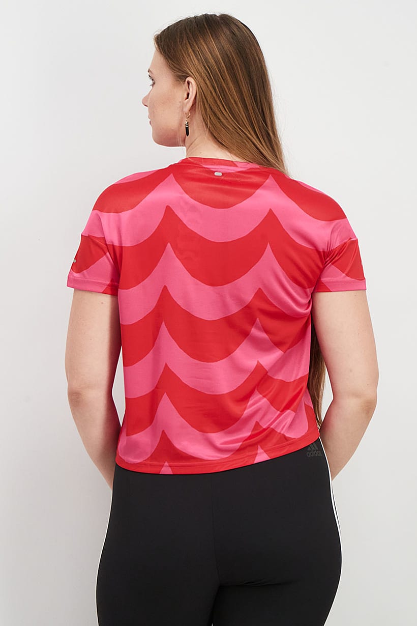 | descriptionOriginal | Bottom Hem : Straight, Care : Machine washable, Fit : Sportswear Fit, Size shown : Asian, Sleeve Length : Short Sleeve, Thickness : Light, Type of Sport : Running, Disclaimer : Product color may slightly vary due to photographic lighting sources or your monitor settings., Fabrics : 100% Polyester, Pattern & Print : Graphic print, Sportswear Type : T-Shirt, Types of Closures : Pullover, Color Family : Red, Pink, Types of Neckline & Collar : Round neckline, |