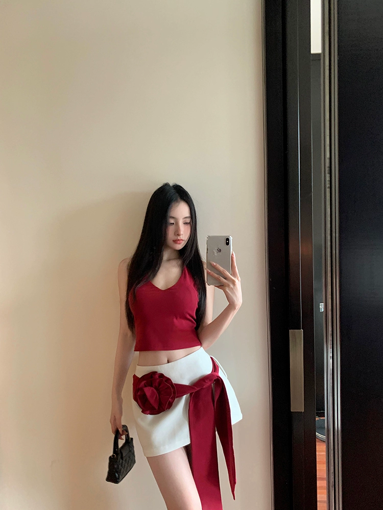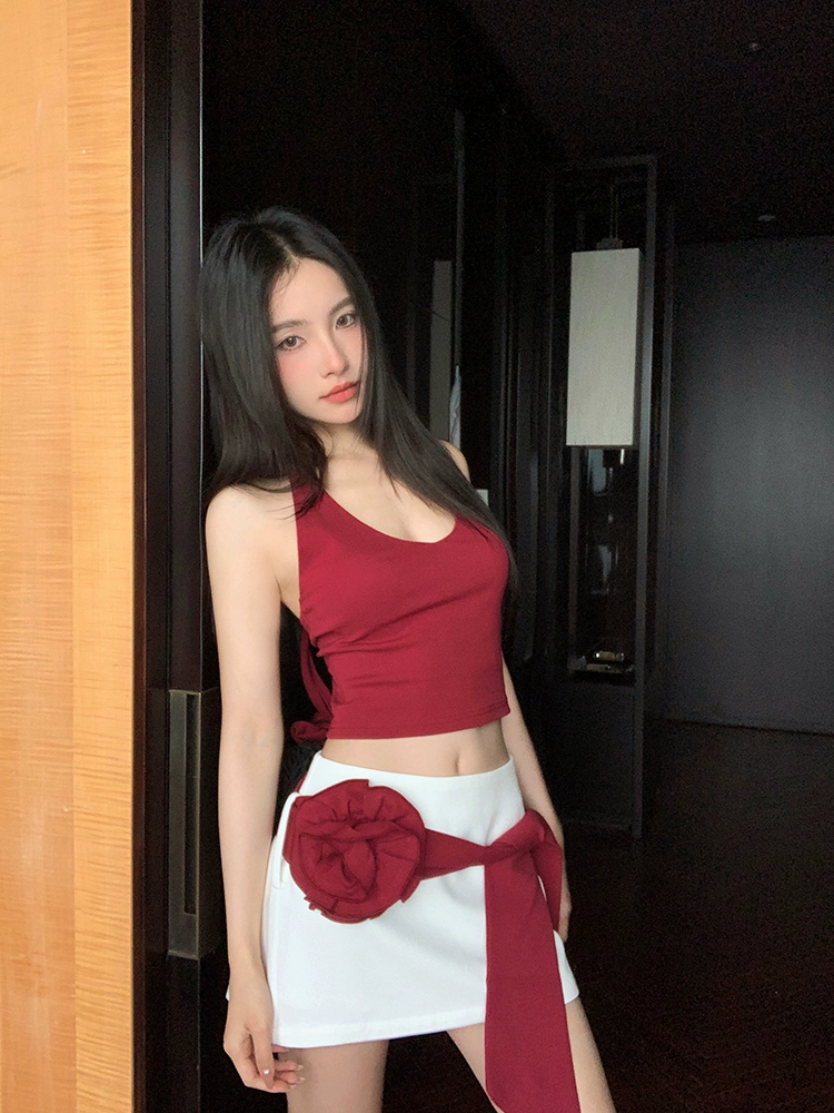 Red Backless Women's Clothing Fit Sweet Girl Sleeveless Halter