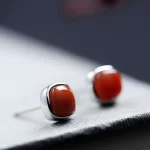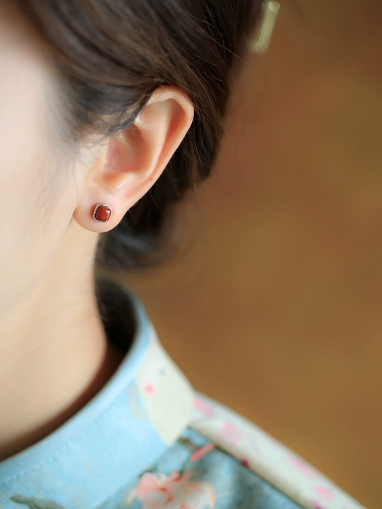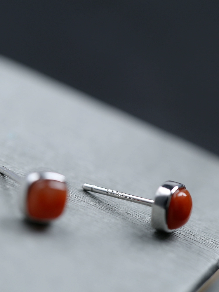 Red Bean Southern Red Agate Sterling Silver Sugar Cube Earrings Women’s Red Zodiac Year Earrings Earrings New Year Snake Year Gift