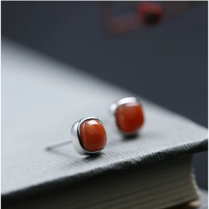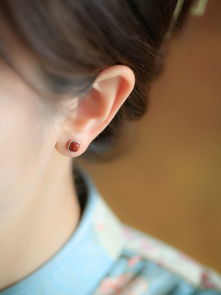 Red Bean Southern Red Agate Sterling Silver Sugar Cube Earrings Women’s Red Zodiac Year Earrings Earrings New Year Snake Year Gift