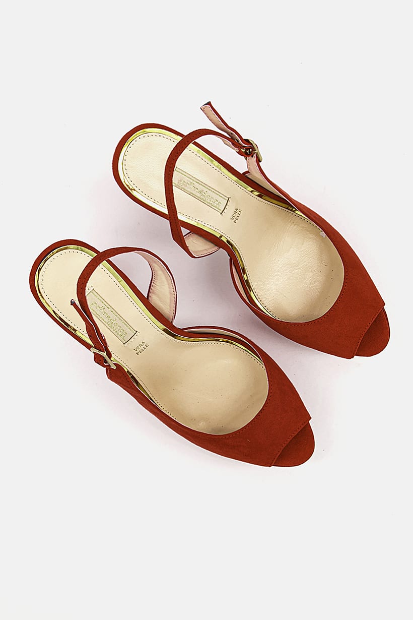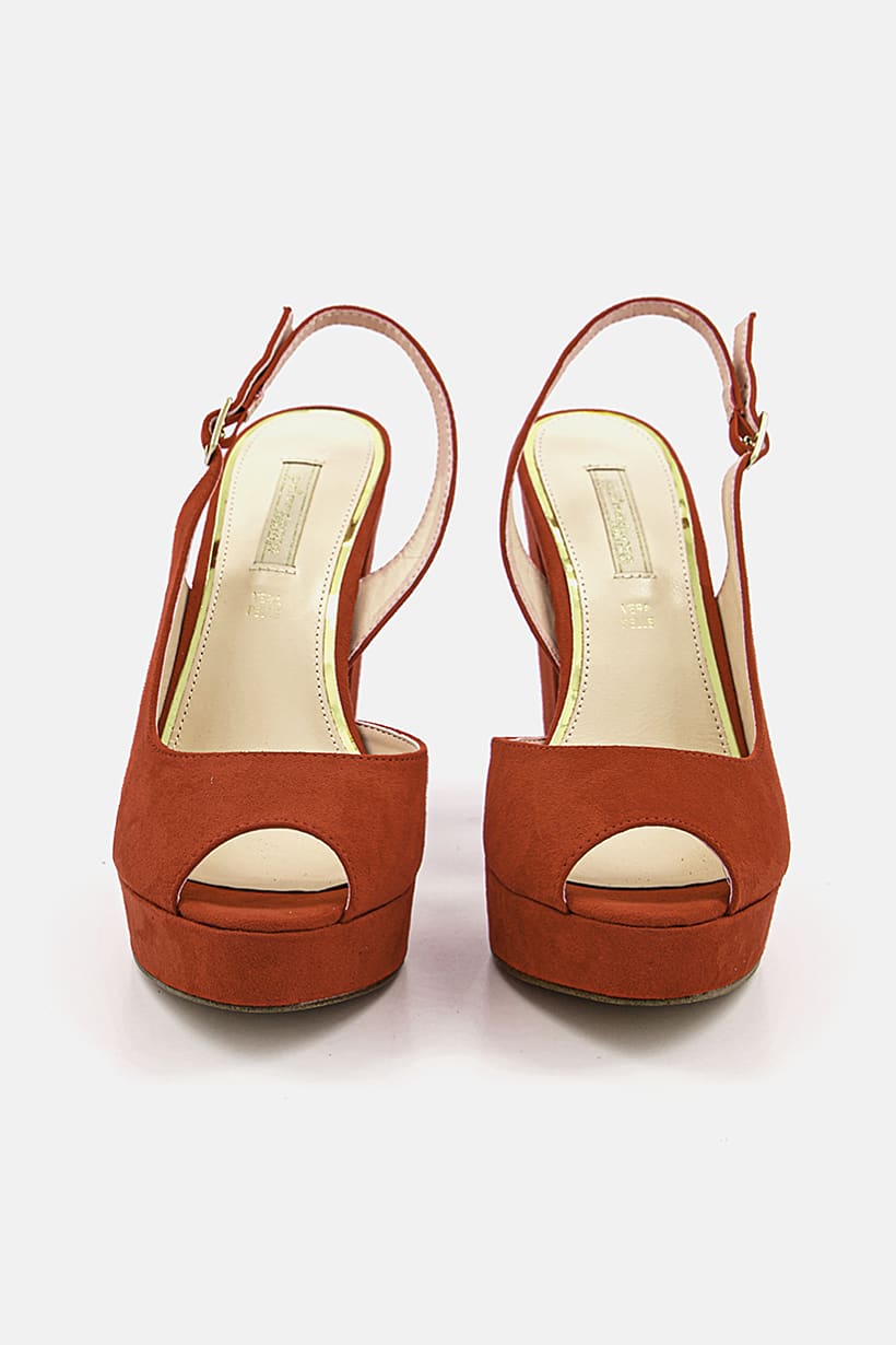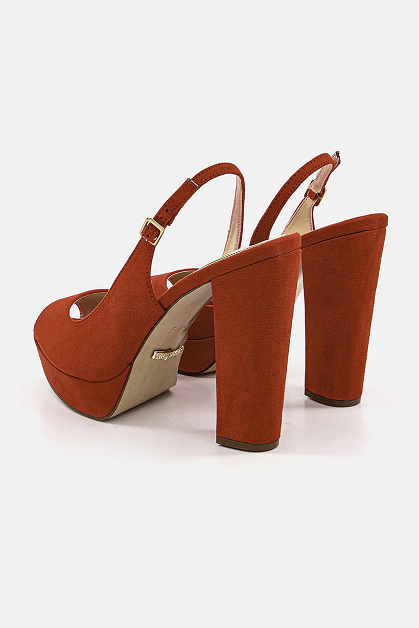 Heel Height : 5.25" / 13.3 cm, Heel Style : Block heel, Ideal For : Women, Shoe Closure : Slingback, Sole Material : Synthetic sole, Toe Style : Peep toe, Disclaimer : Product color may slightly vary due to photographic lighting sources or your monitor settings., Occasion : Casual, Shoe Material : Suede , Color Family : Red,
