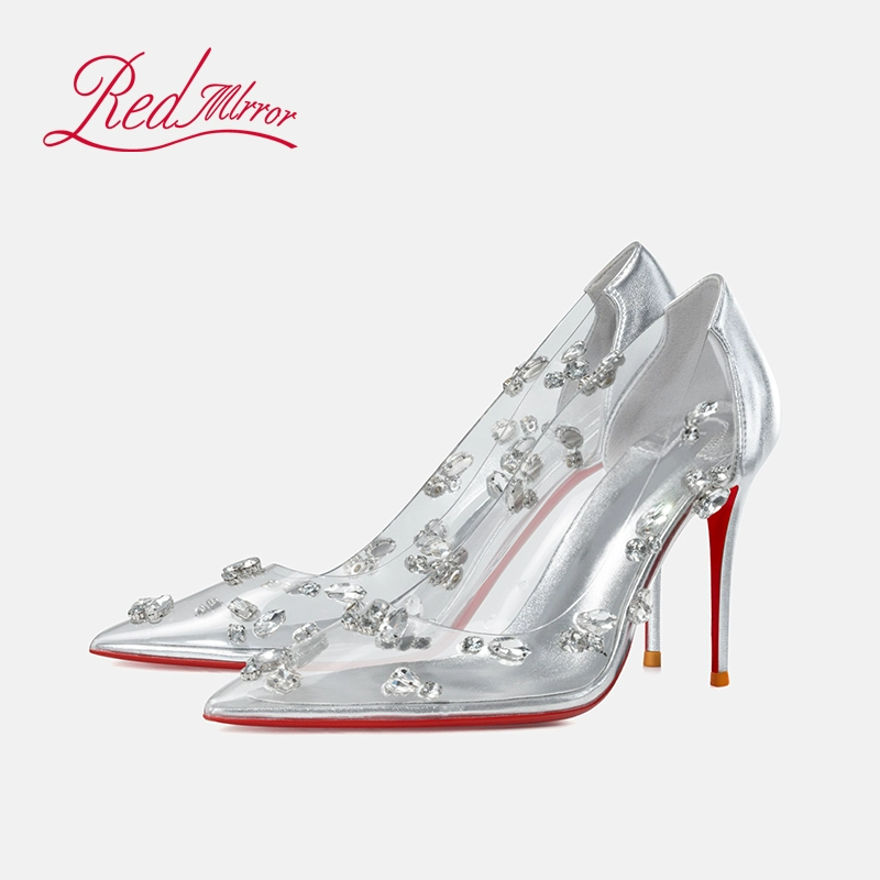 | nameOriginal | Red bottom transparent pointed toe sexy women's stiletto high heels wedding shoes silver rhinestone crystal fairy style new style 2024 |