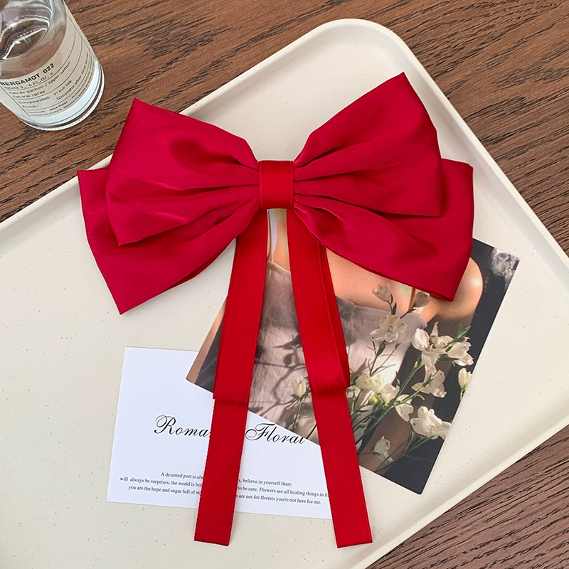 | nameOriginal | Red bow headband on the back of children's head, girl's streamer hairpin, princess high-end spring clip, female hairpin hair accessory  |