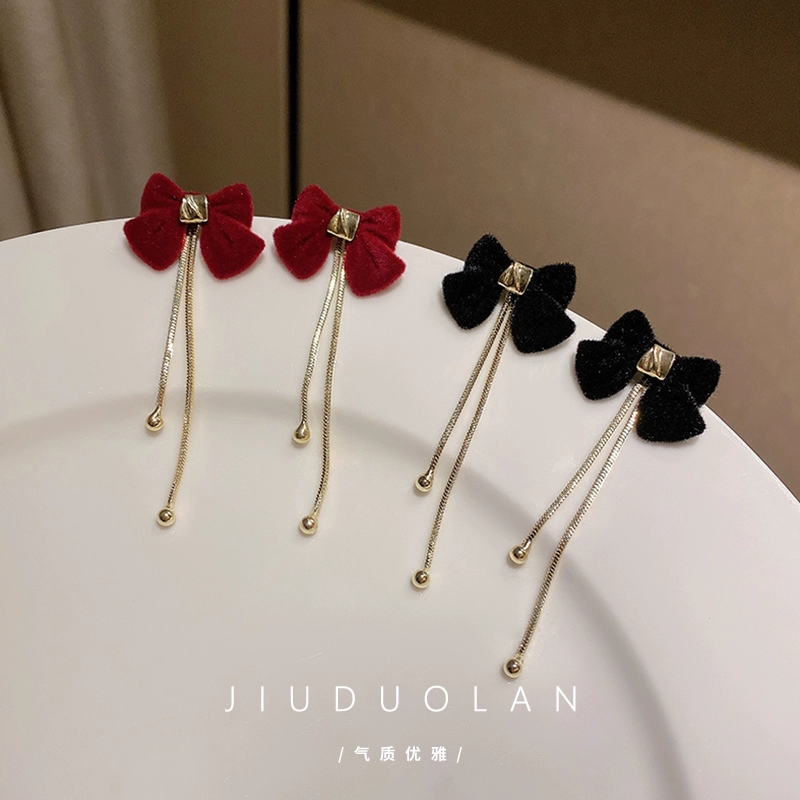 | nameOriginal | Red bow pearl tassel earrings for women, high-end long New Year festive earrings, slimming New Year earrings |