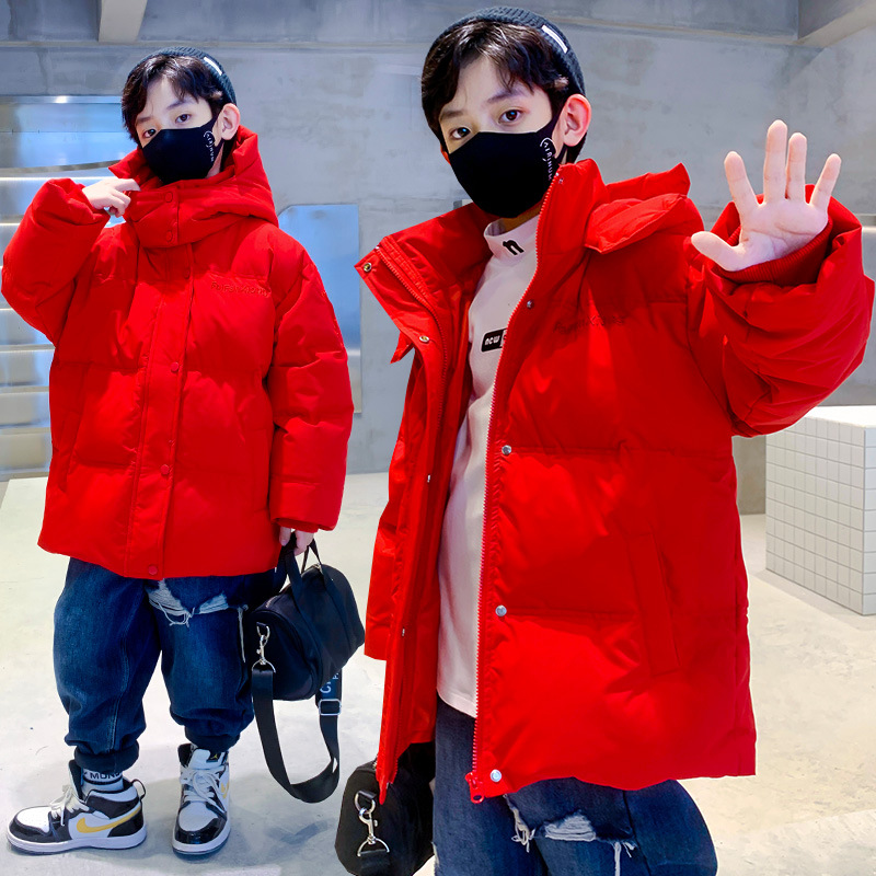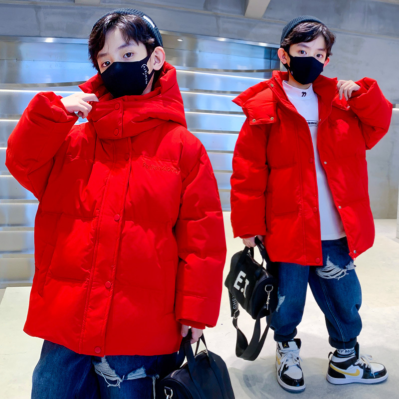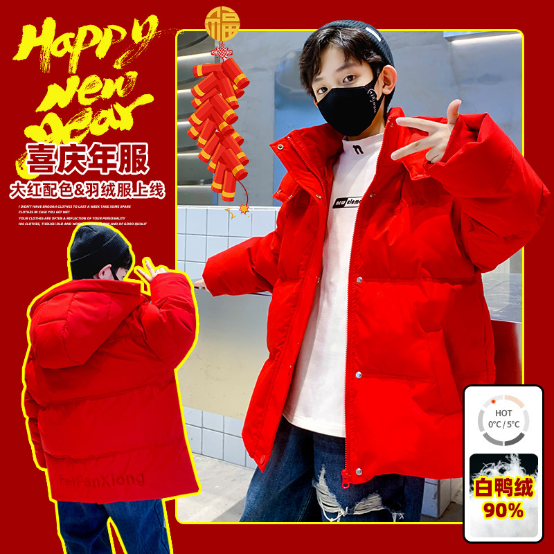 Red boys’ down jacket children’s clothing waterproof white duck down medium and big children’s thickened coat New Year greeting clothes