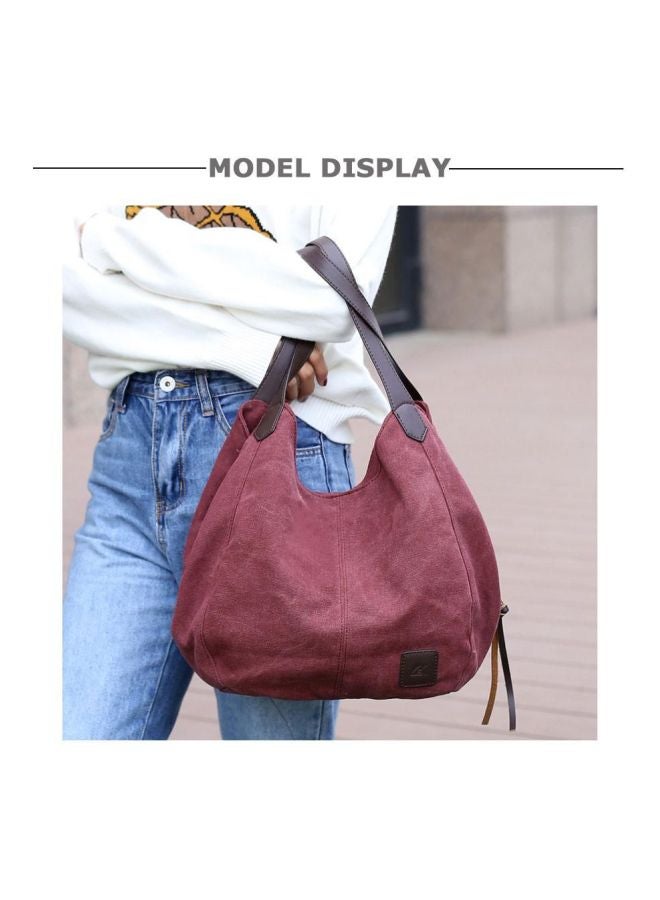 Canvas Shopper Bag Red/Brown