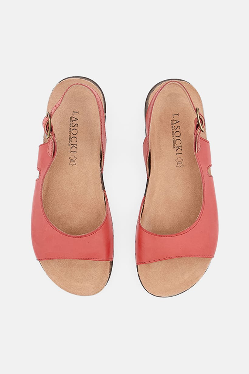 Heel Height : 0.39" / 1 cm, Heel Style : Wedge heel, Ideal For : Women, Shoe Closure : Adjustable buckle closure, Sole Material : Synthetic sole, Toe Style : Open toe, Disclaimer : Product color may slightly vary due to photographic lighting sources or your monitor settings., Occasion : Casual, Shoe Material : Genuine Leather, Color Family : Red,