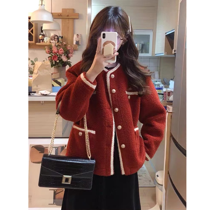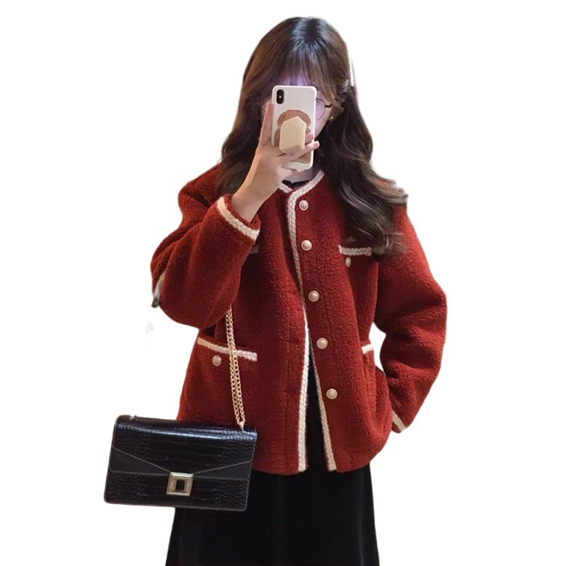 Red Chanel Style Thick Coat Women's Spring Summer 2024 New Year Red Short Plush Design Short Top