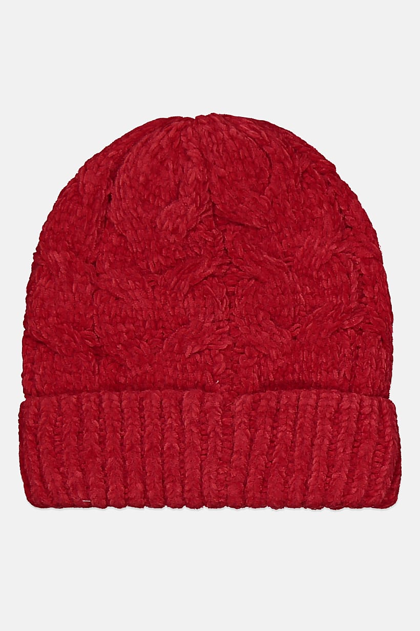 | nameOriginal | Women Cable Knit Chenille Beanie, Red |