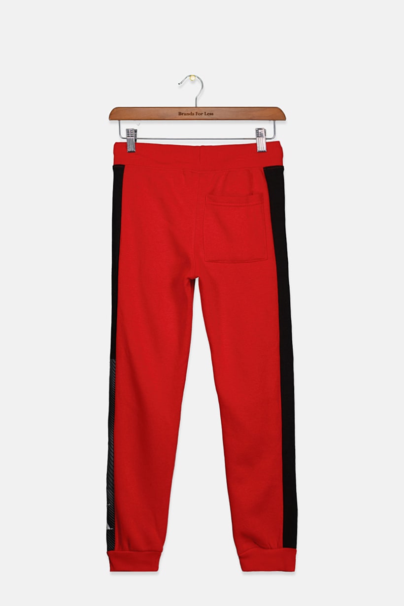 Red Color Blocked Fleece Jogger Pants for Boys with Drawstring.