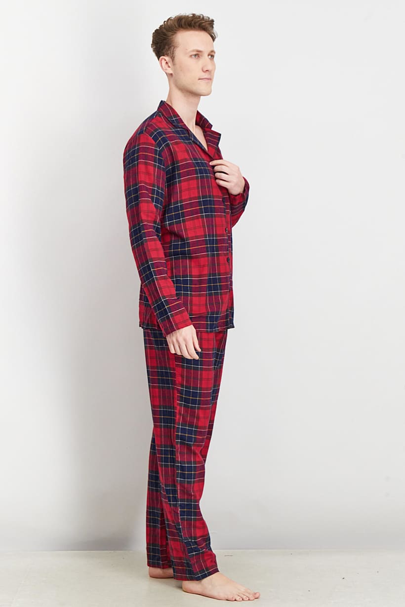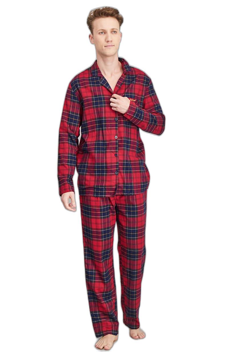 Men Clothing, Sleepwear / Homewear, men 2 pcs cotton plaid pajama set red combo