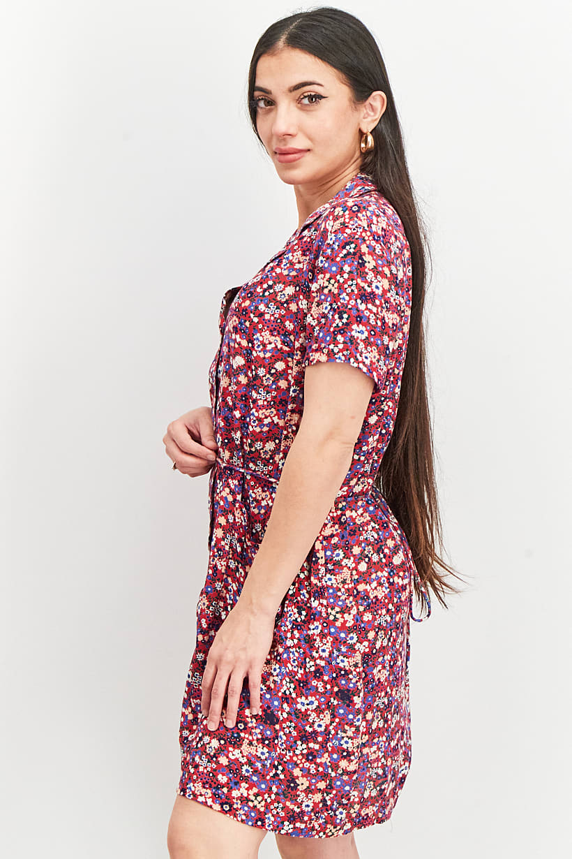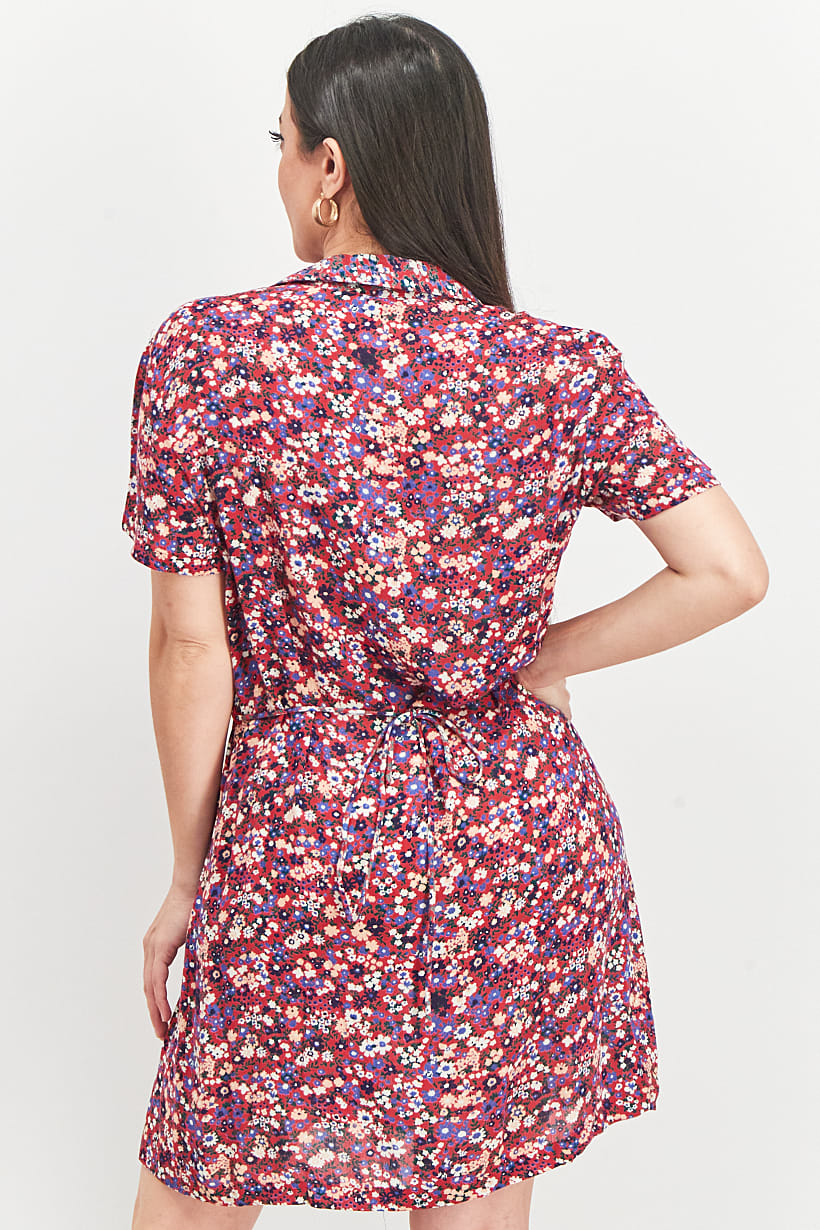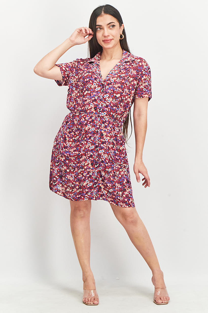 Care : Hand wash, Fit : Regular fit, Size shown : International, Types of Hem : Straight hem, Types of Neckline & Collar : Spread collar , Types of Sleeve : Short sleeve, Disclaimer : Product color may slightly vary due to photographic lighting sources or your monitor settings., Fabrics : 100% Viscose, Occasion : Casual, Pattern & Print : Floral Print, Types of Closures : Button, Color Family : Red, Dress Style : Mini,