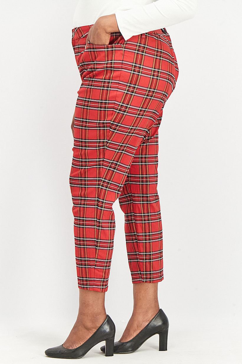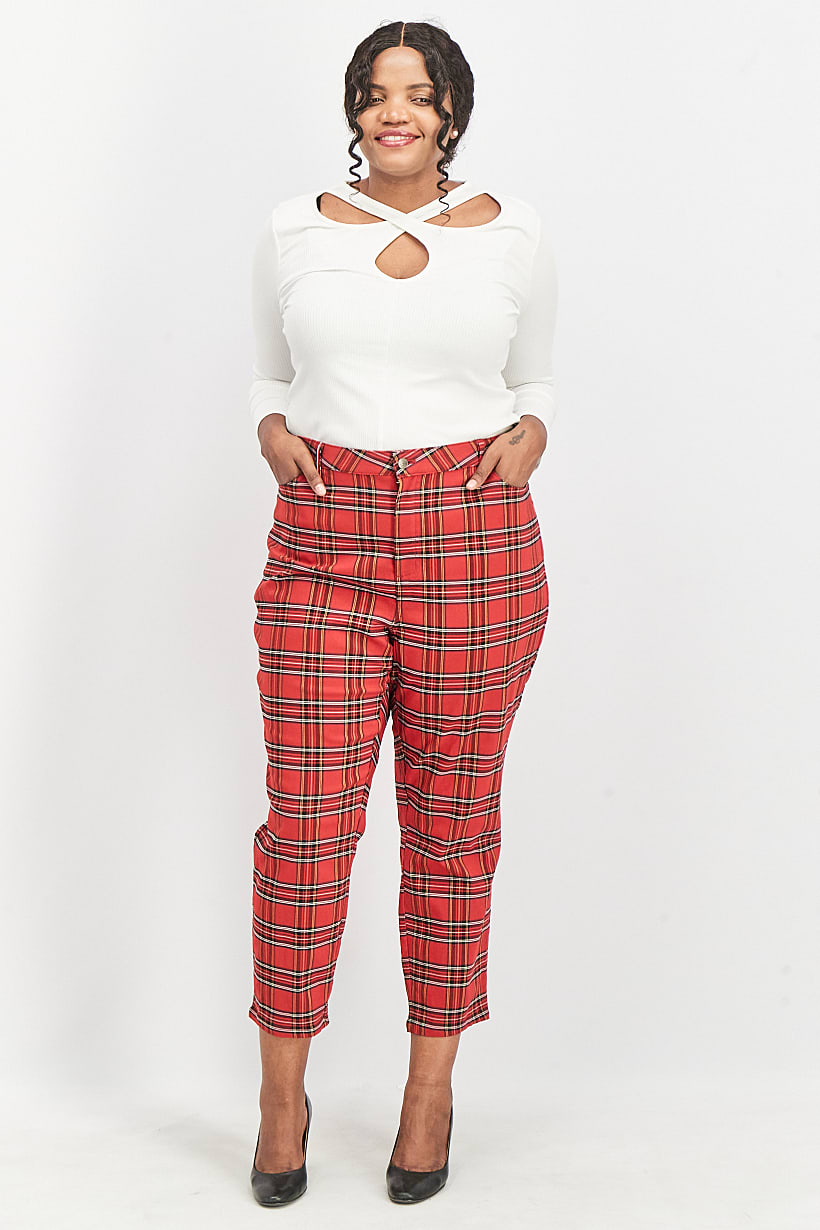 | nameOriginal | Women Plus Sized Plaid Stretchable Pants, Red Combo |