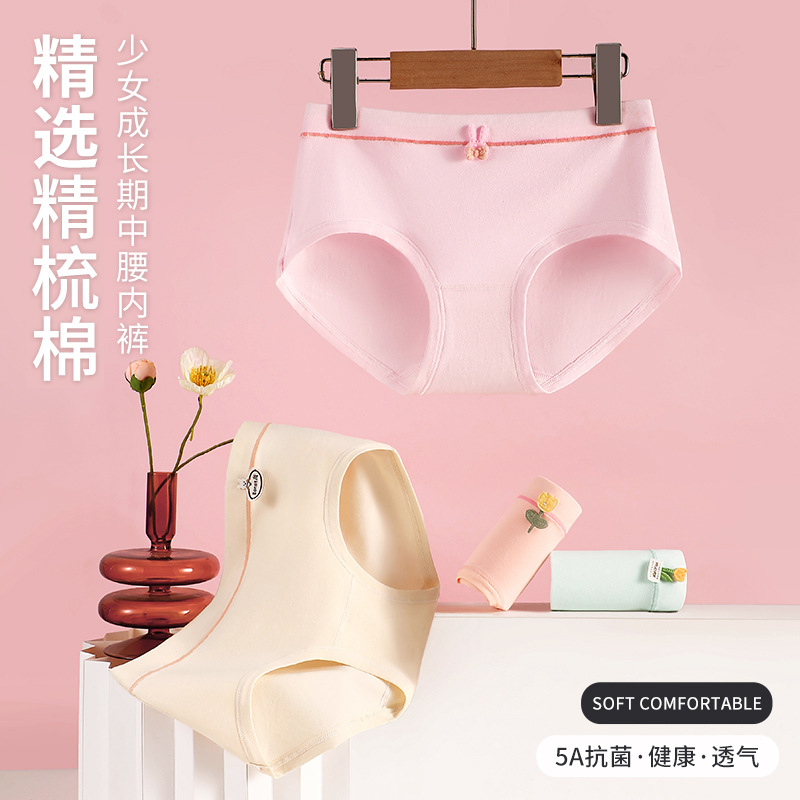 Red Diamond Bird Cotton 5A Bacteriostatic Breathable Bottom Crotch Anti-Pollution Adolescent Student Girl Cotton Mid-Waist Cold-proof Underwear for Girls